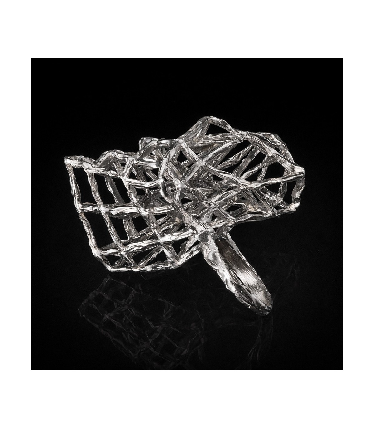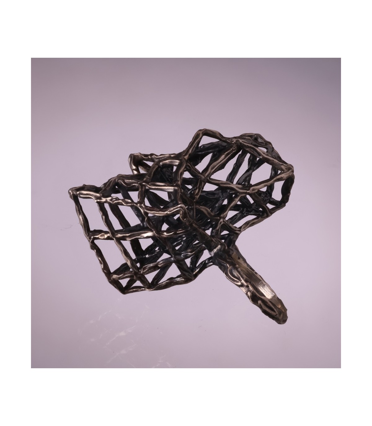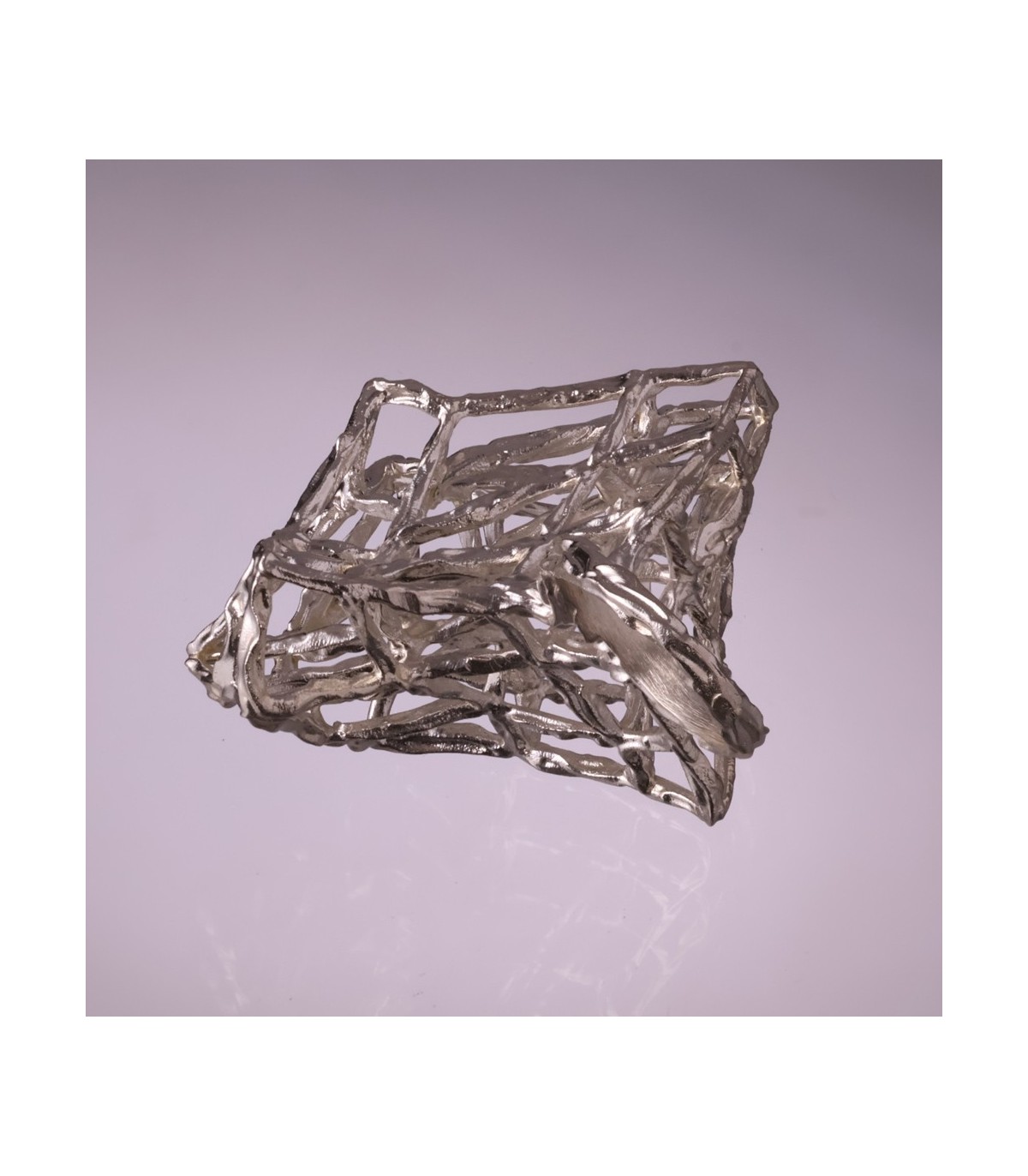 Cubus Geometricus is inspired by architectural frameworks and the idea that beauty can emerge from order repetition and precision. The raw silver surface preserves a handmade organic quality softening the strict geometry and creating a dialogue between control and spontaneity.
