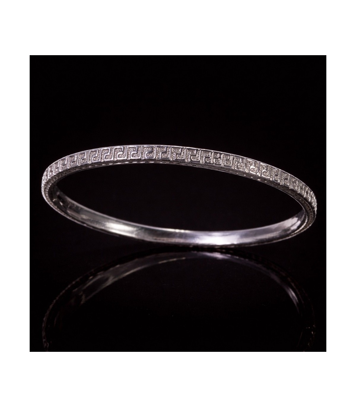 The CORONA ATHENIS bangle is a refined silver bracelet crafted from sterling silver 925, inspired by classical harmony and ancient ideals. Its sculpted surface subtly echoes architectural rhythm and balance, creating a sense of dignity and timeless beauty.