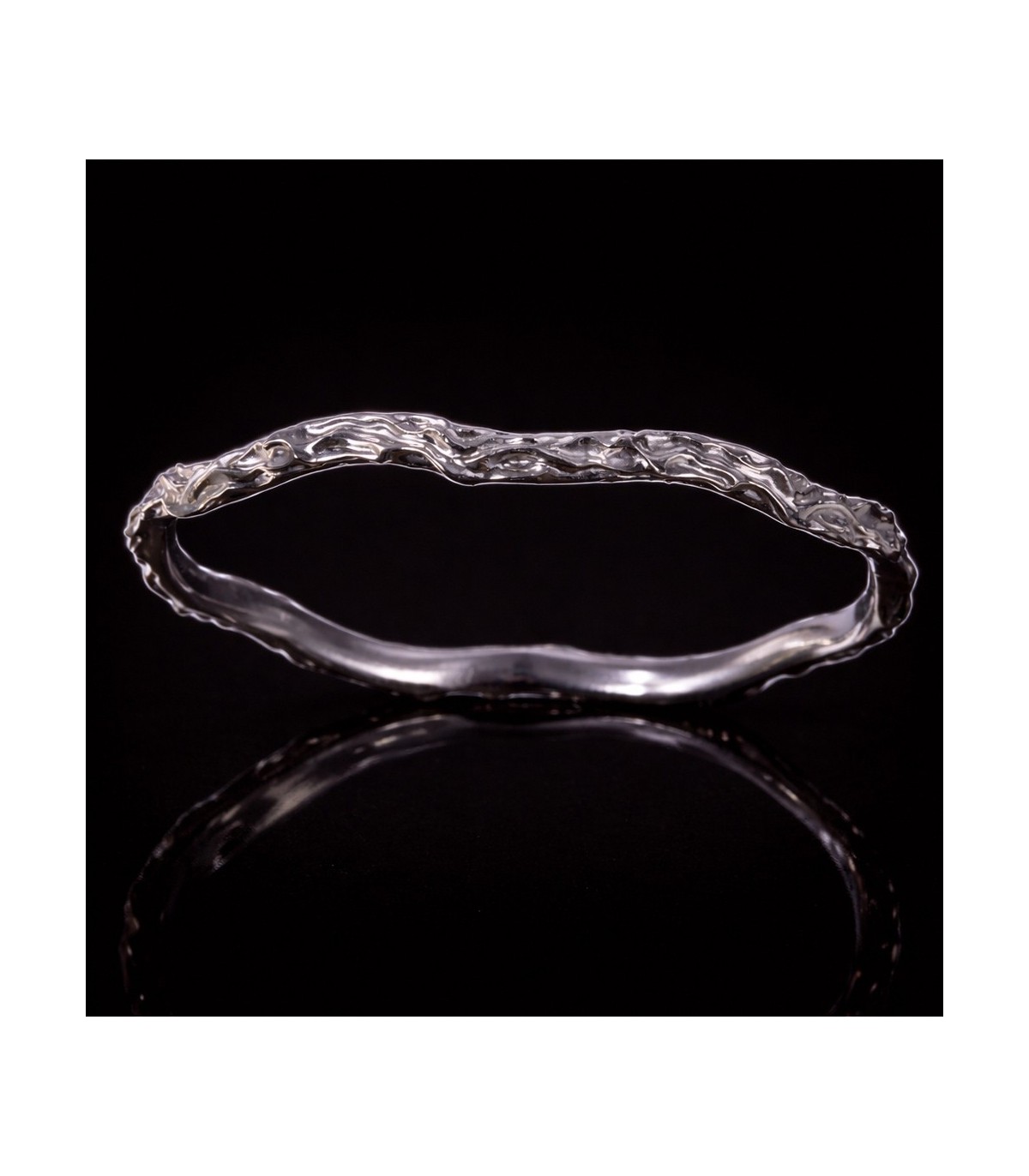 The HYADES bangle bracelet is crafted from sterling silver 925 and inspired by the quiet order of the night sky. Its refined texture and balanced form reflect a sense of cosmic rhythm—calm, timeless, and infinitely precise. The bracelet feels light yet grounded, making it a natural extension of the body.