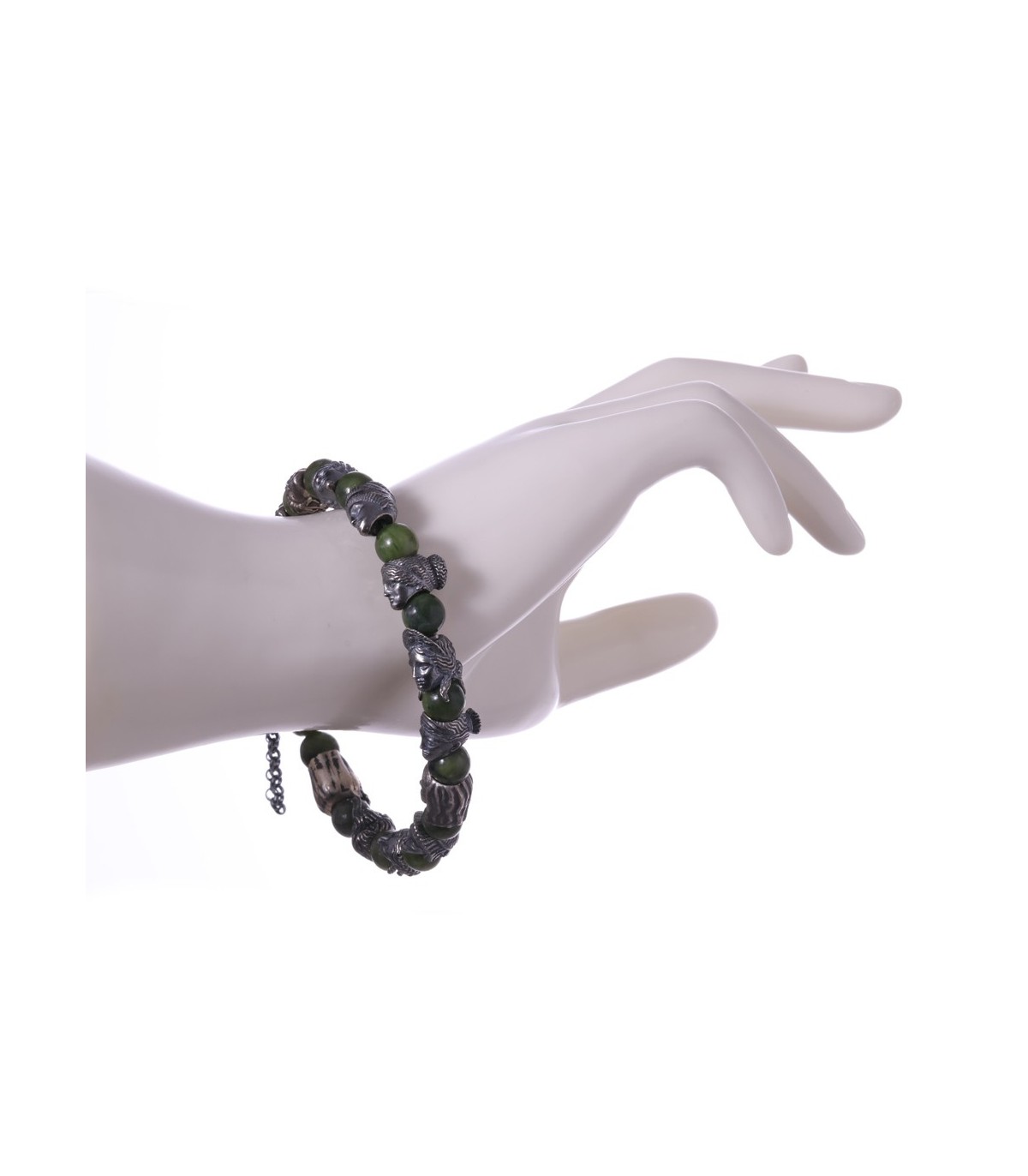 Exhortor – Silver Bracelet of Ancient Female Figures and Green Serpentine