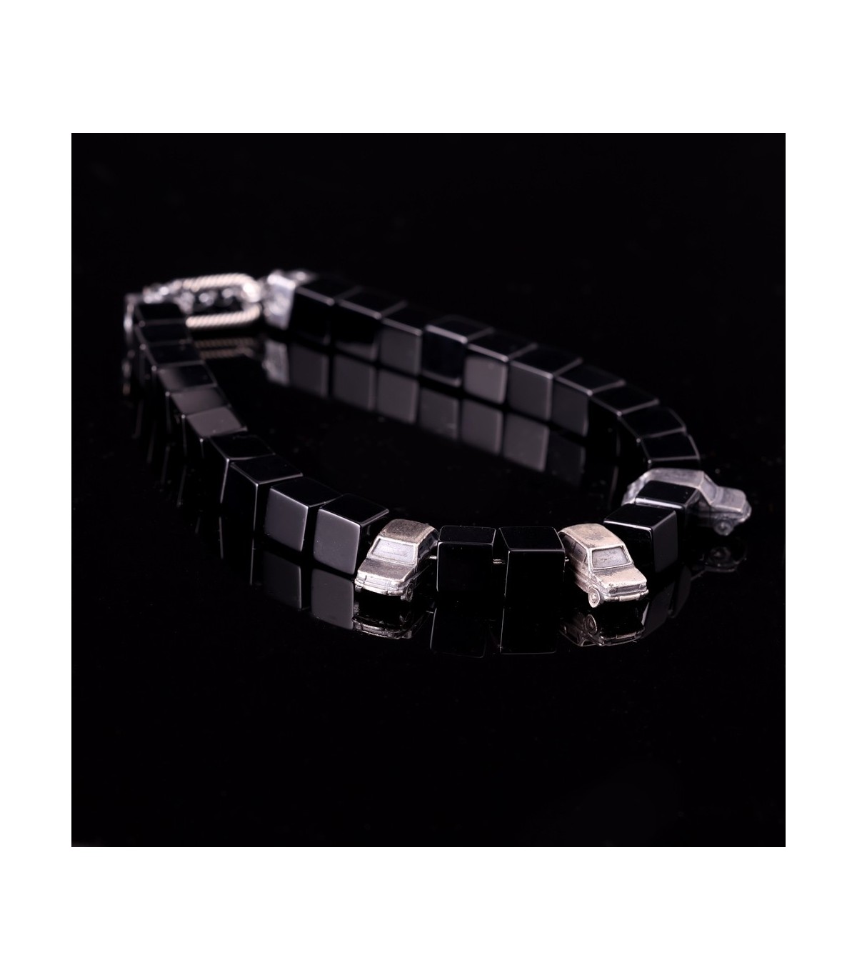 Lectica Silver Onyx Bracelet with Fiat 126 Models