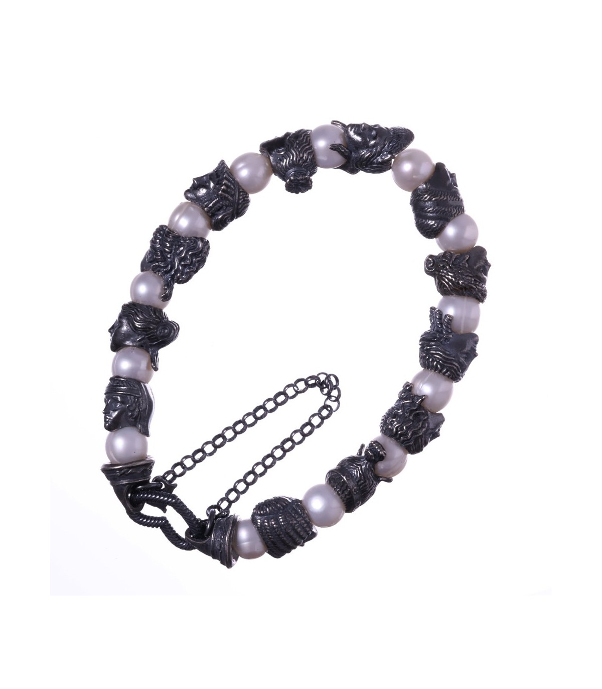 Nitidissimus – Silver Bracelet of Ancient Female Figures and Pearls