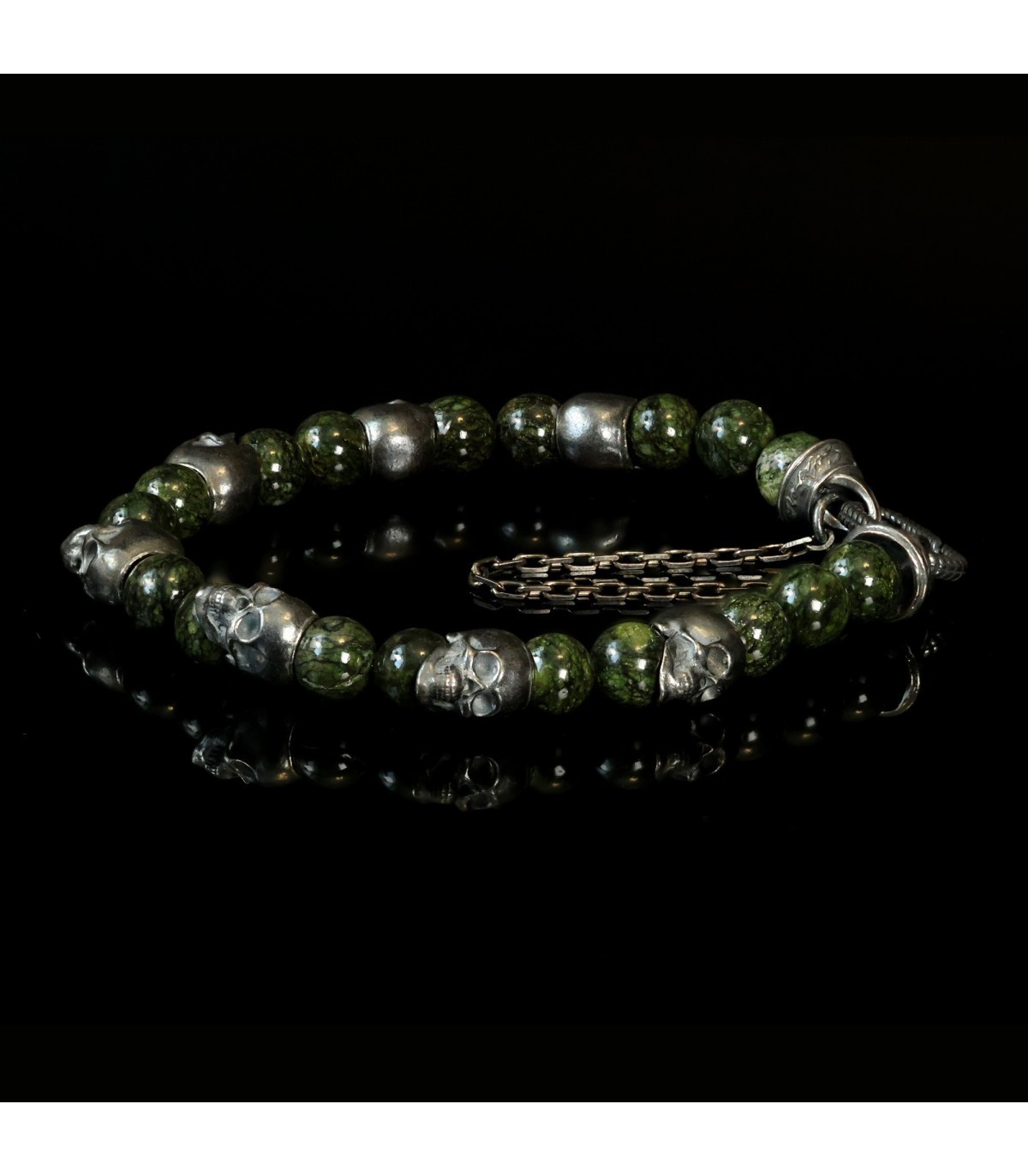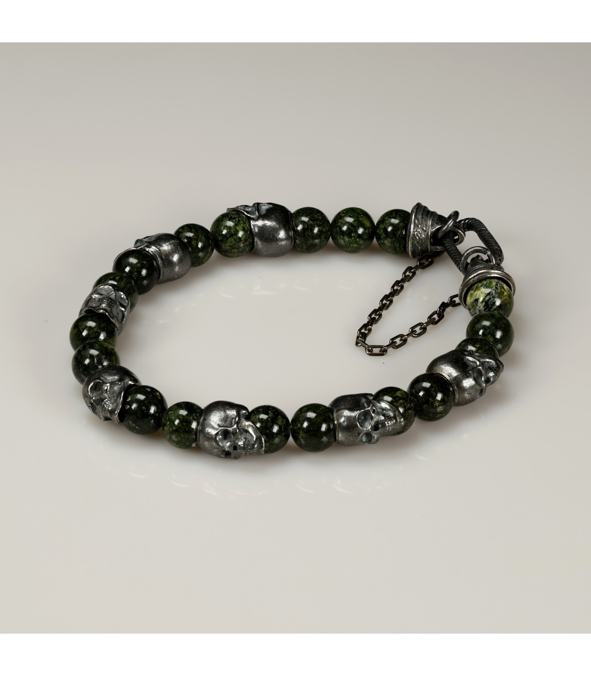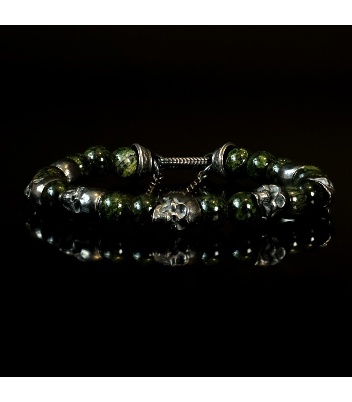 PERFUGA - Unique Bracelet with Serpentine and Silver Skulls