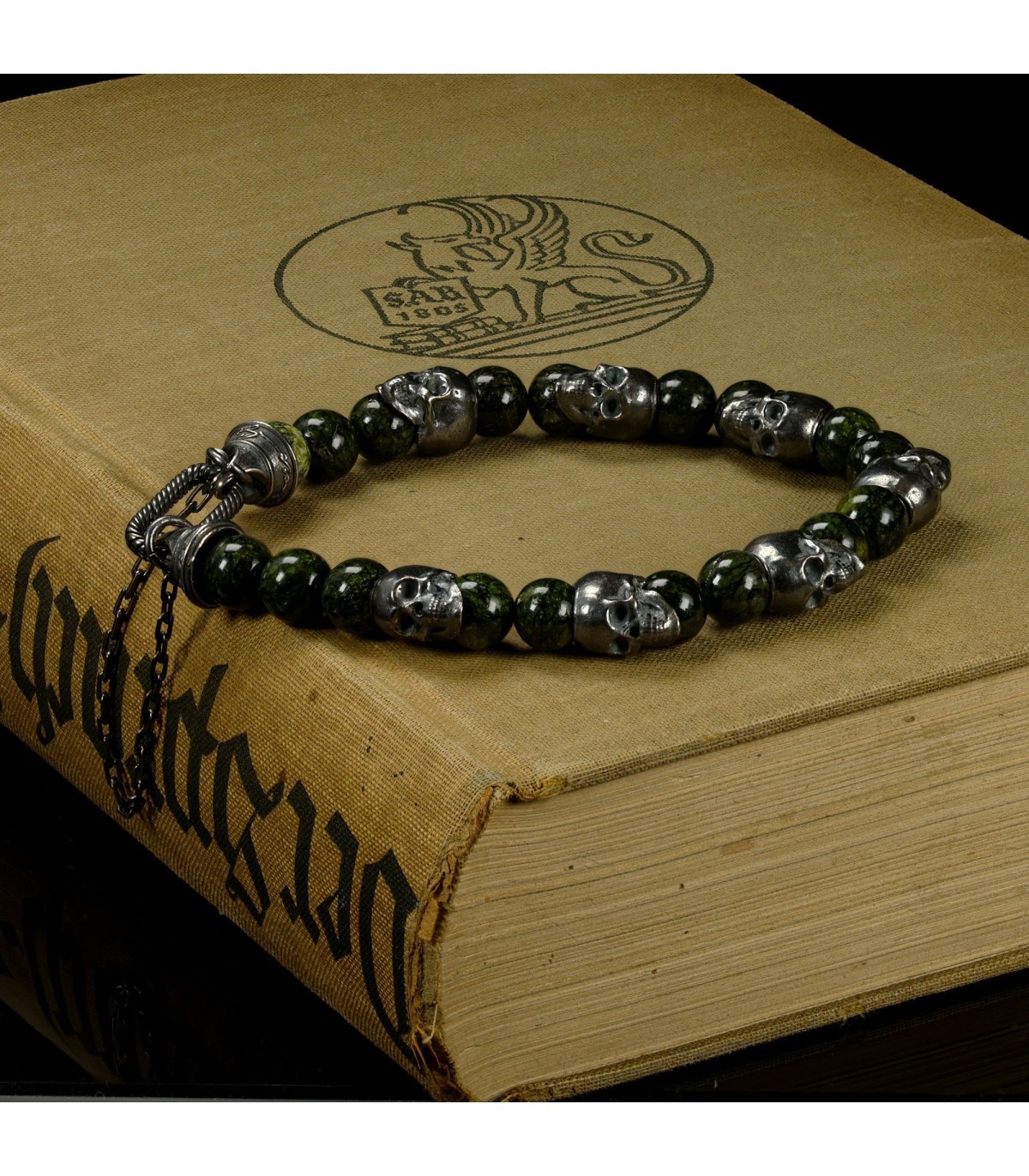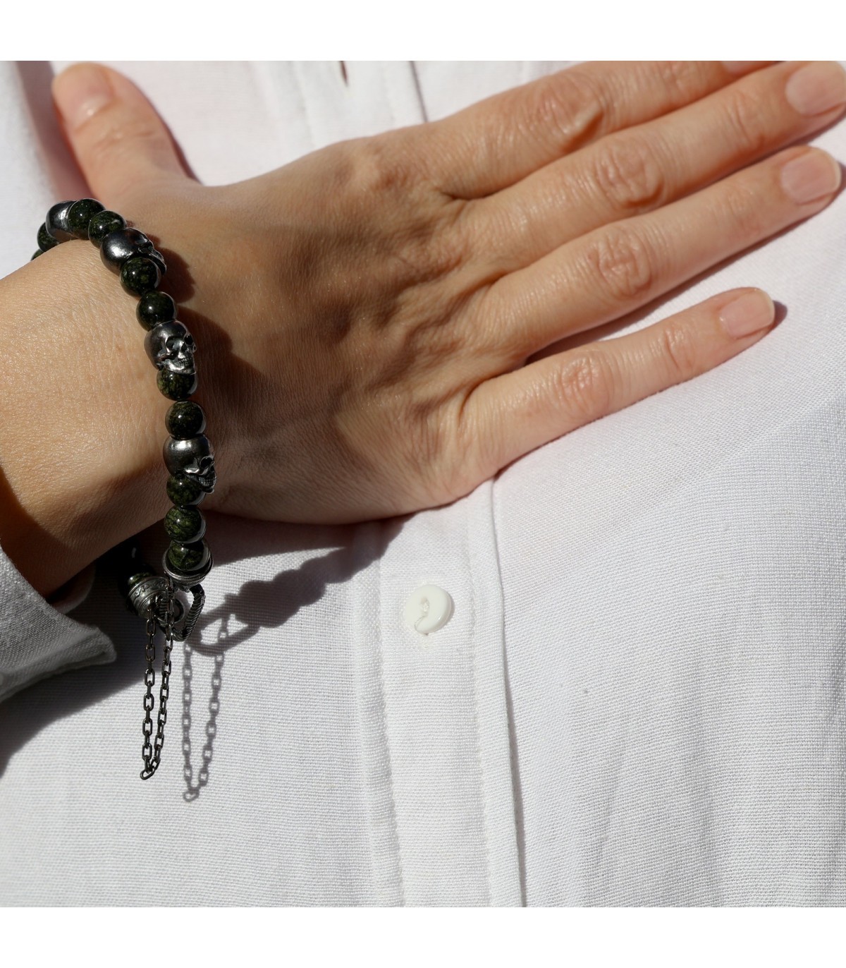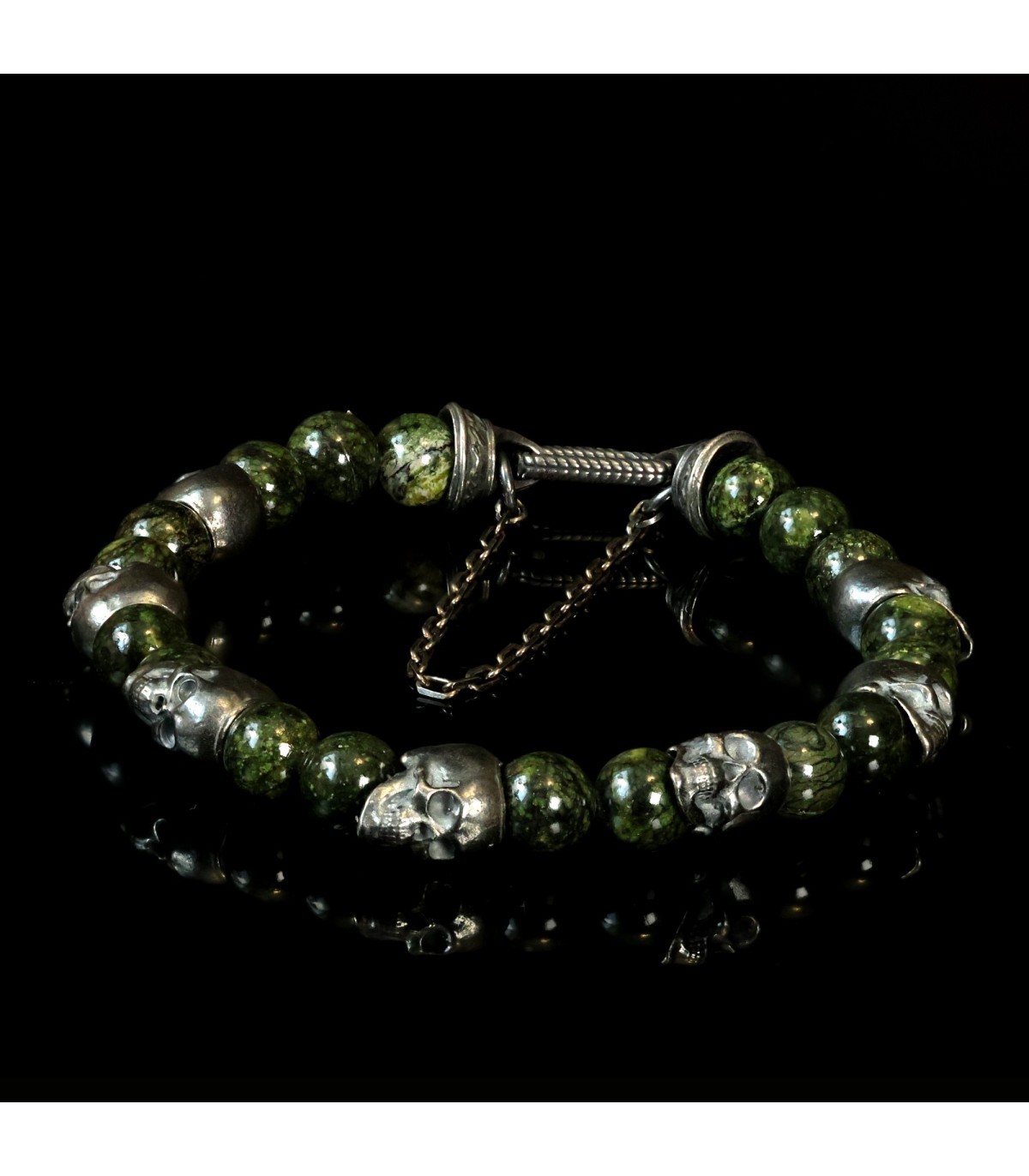 PERFUGA - Unique Bracelet with Serpentine and Silver Skulls