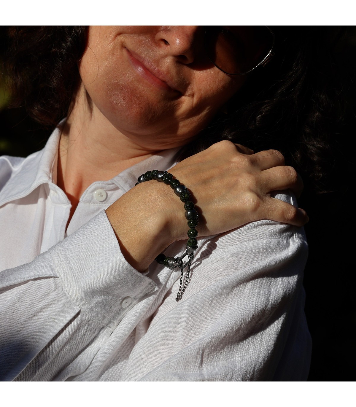 Silver Bracelet with Serpentine Stones PERFUGA
