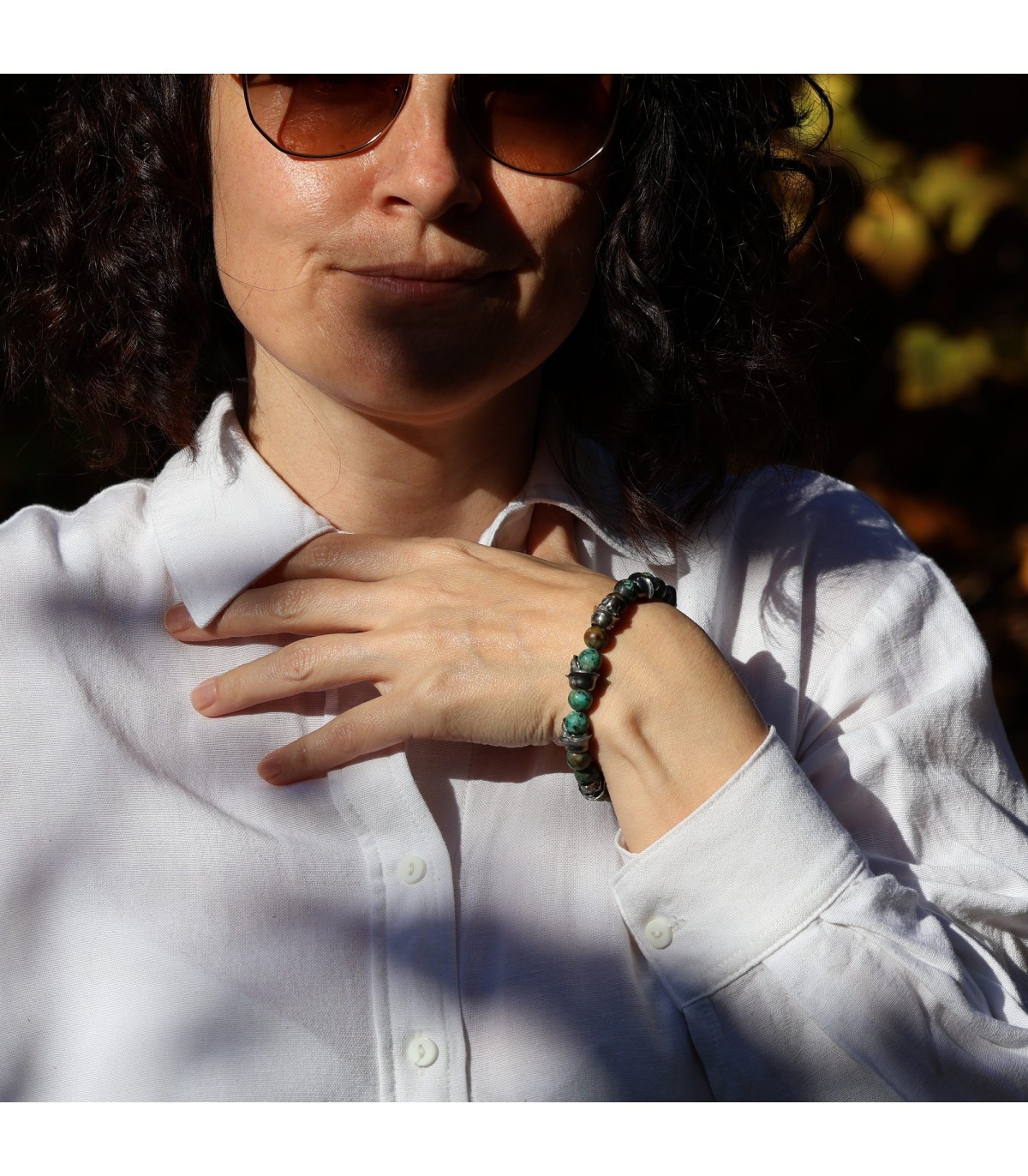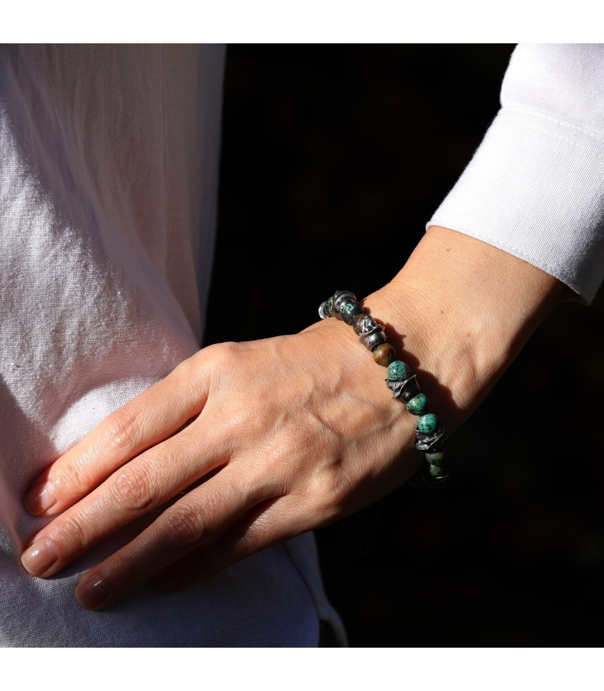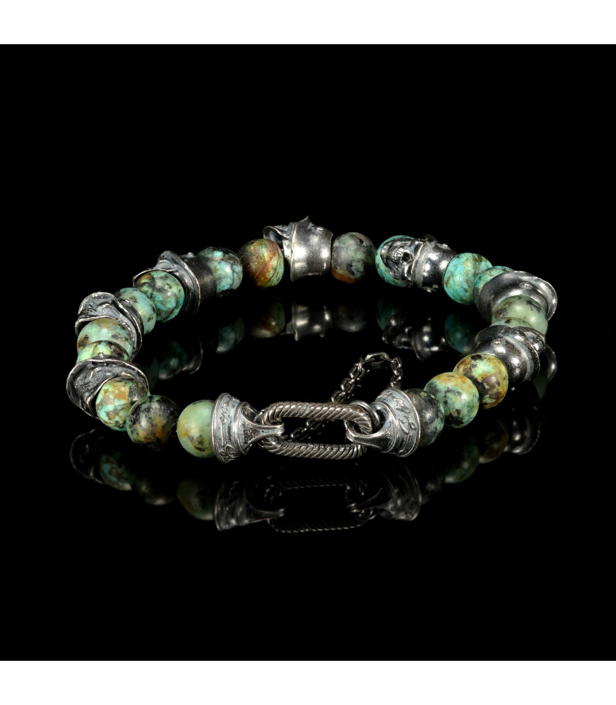 Exclusive Bracelet "PHALANX" – Green Turquoise and Silver