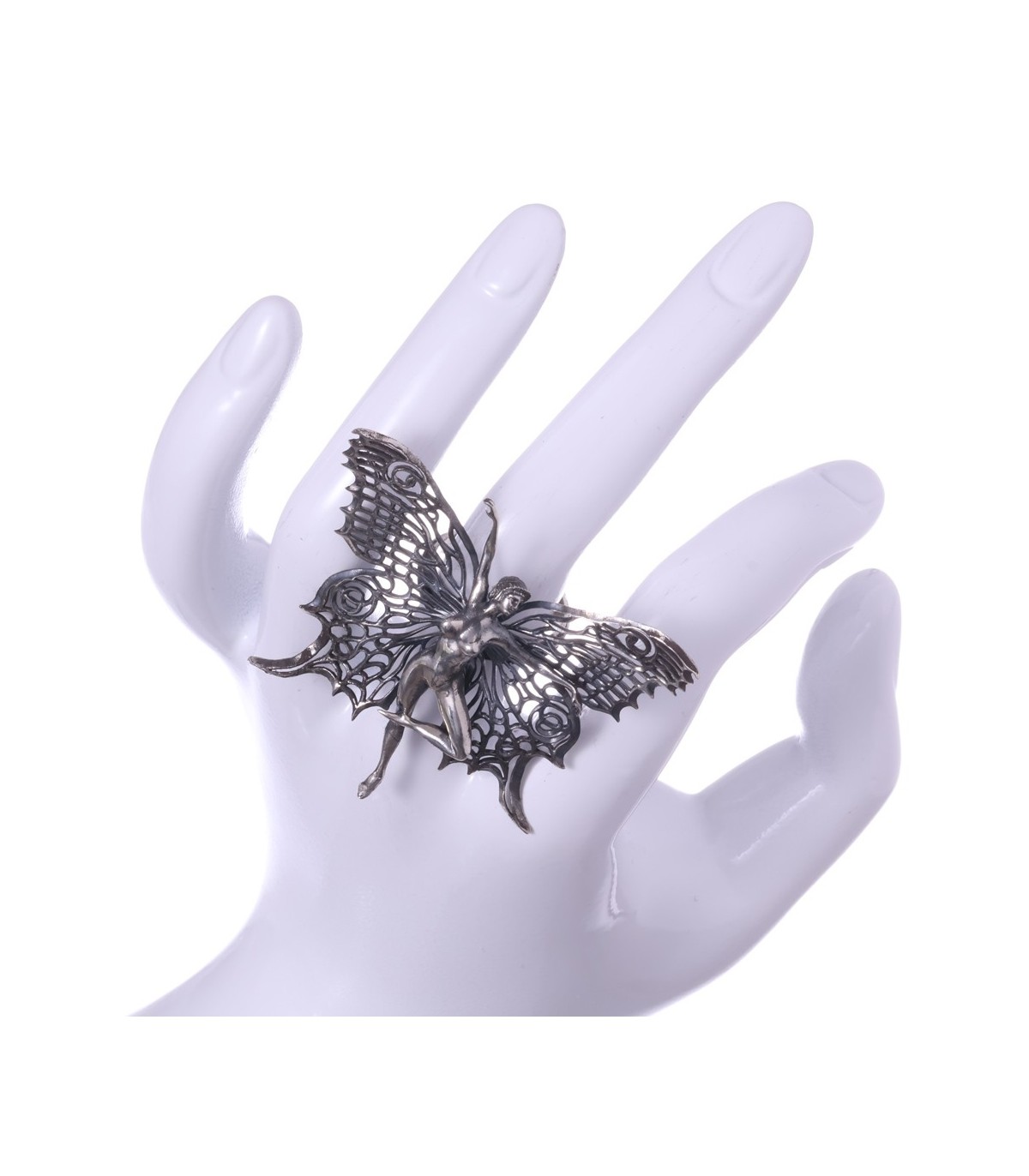 The ring is available in two finishes: polished silver, bright and elegant, and oxidized silver, deeper and more mysterious. A perfect choice for women who appreciate jewelry with character.