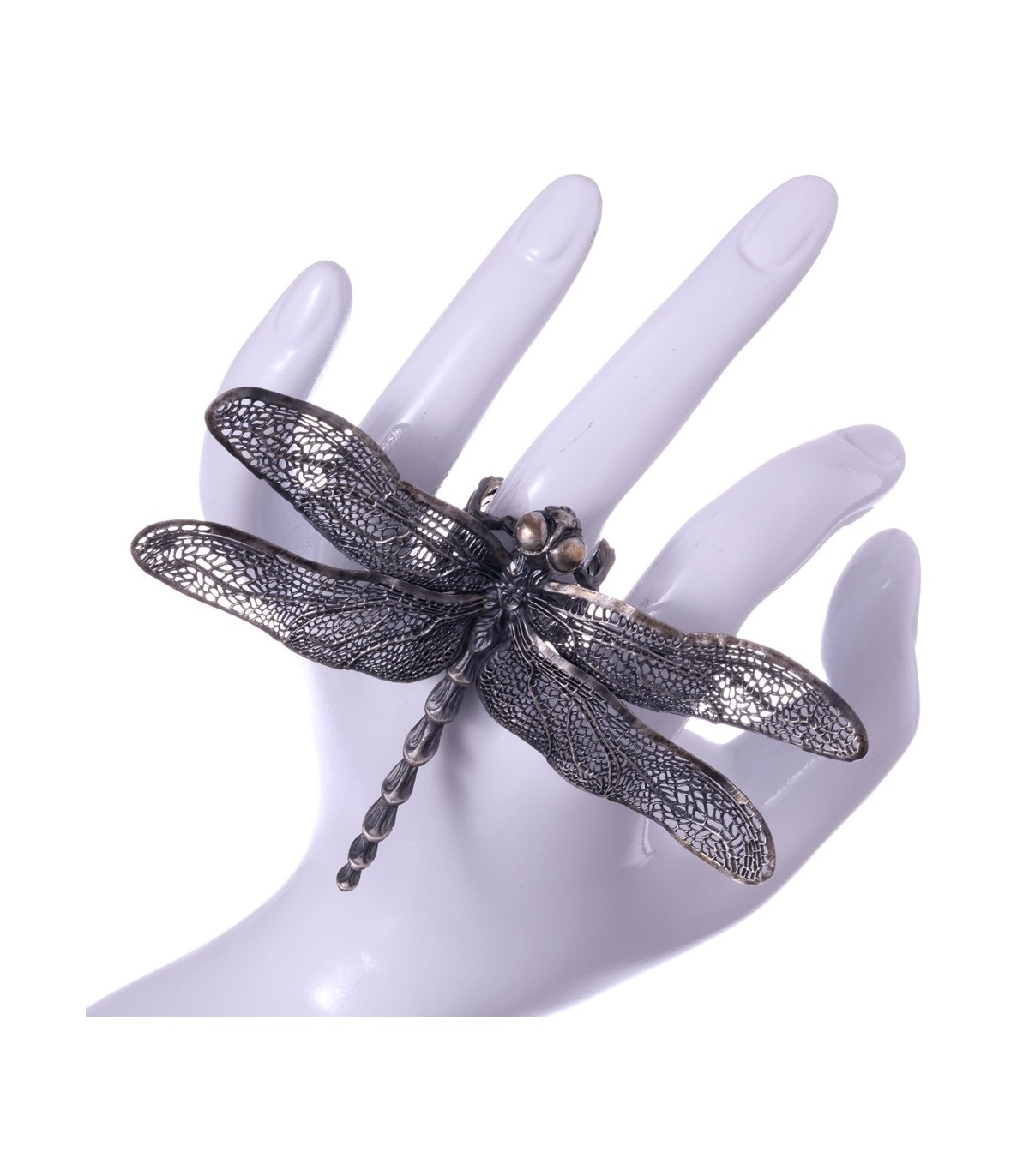 Medesikaste Silver Openwork Dragonfly Ring With Silver Eyes