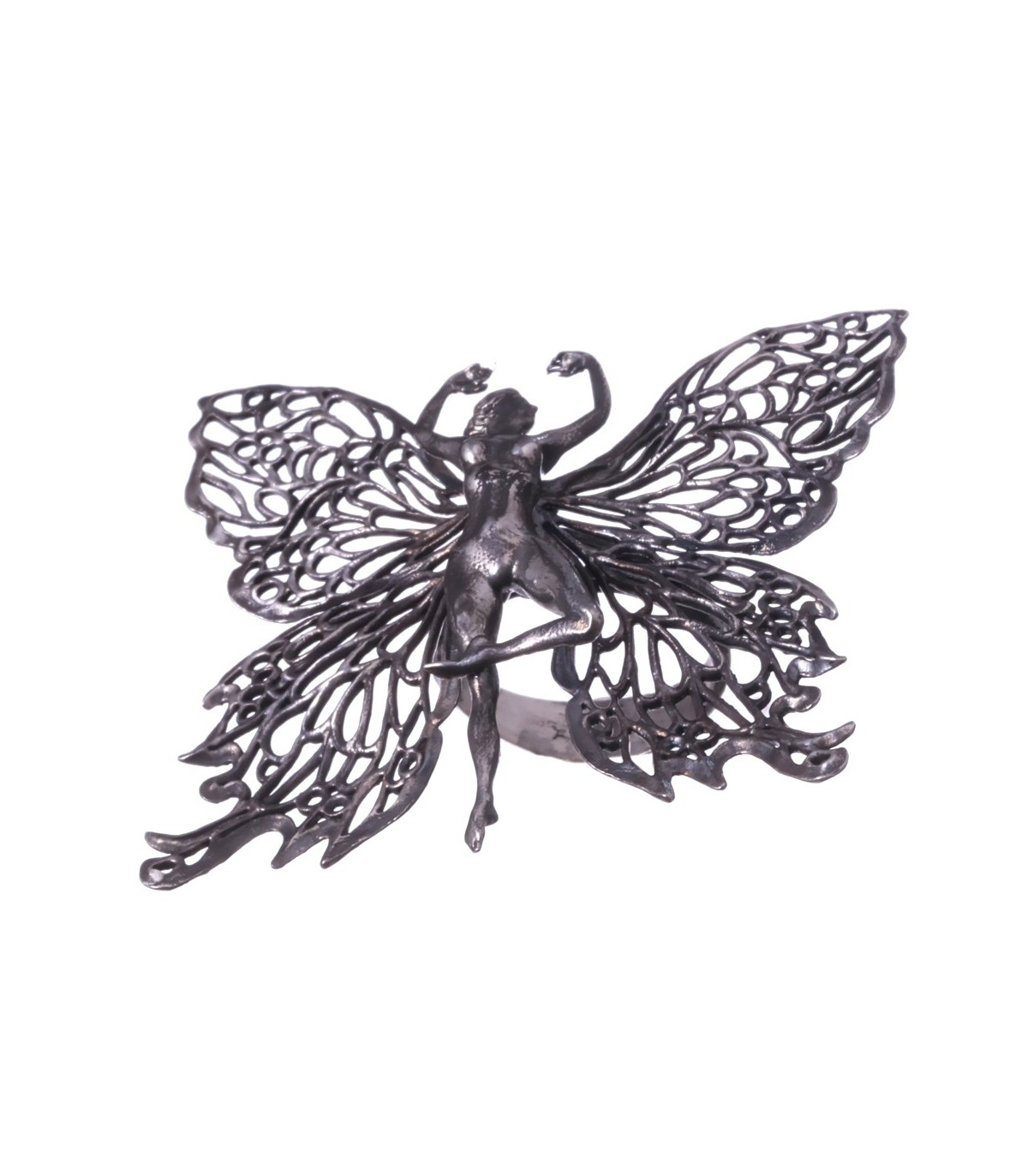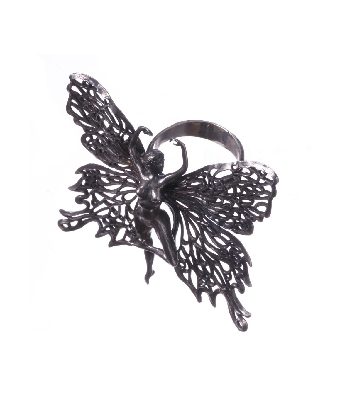 The ring is available in polished and oxidized versions, with the oxidized finish enhancing its raw, mysterious appeal. A powerful choice for confident, free-spirited women.