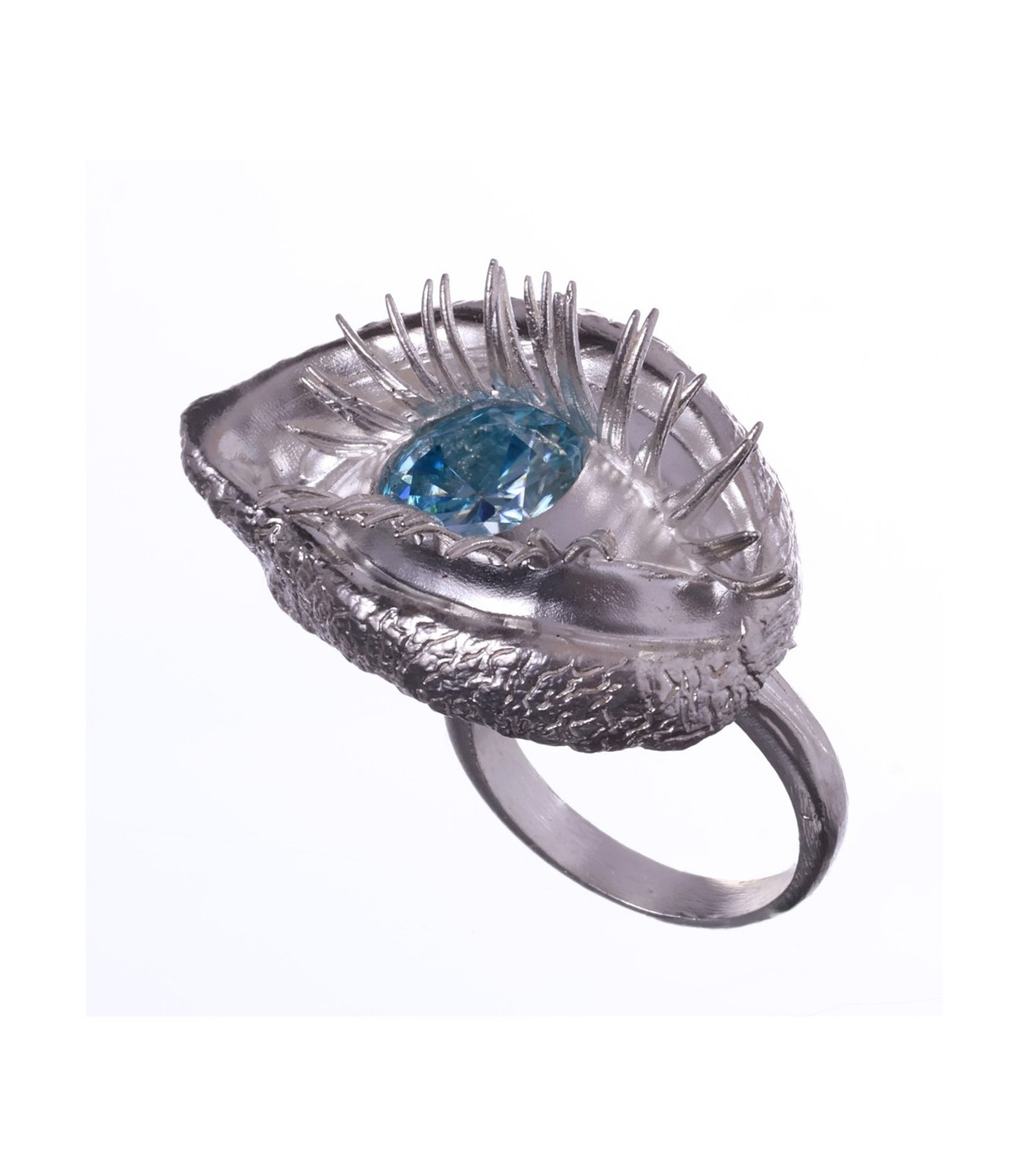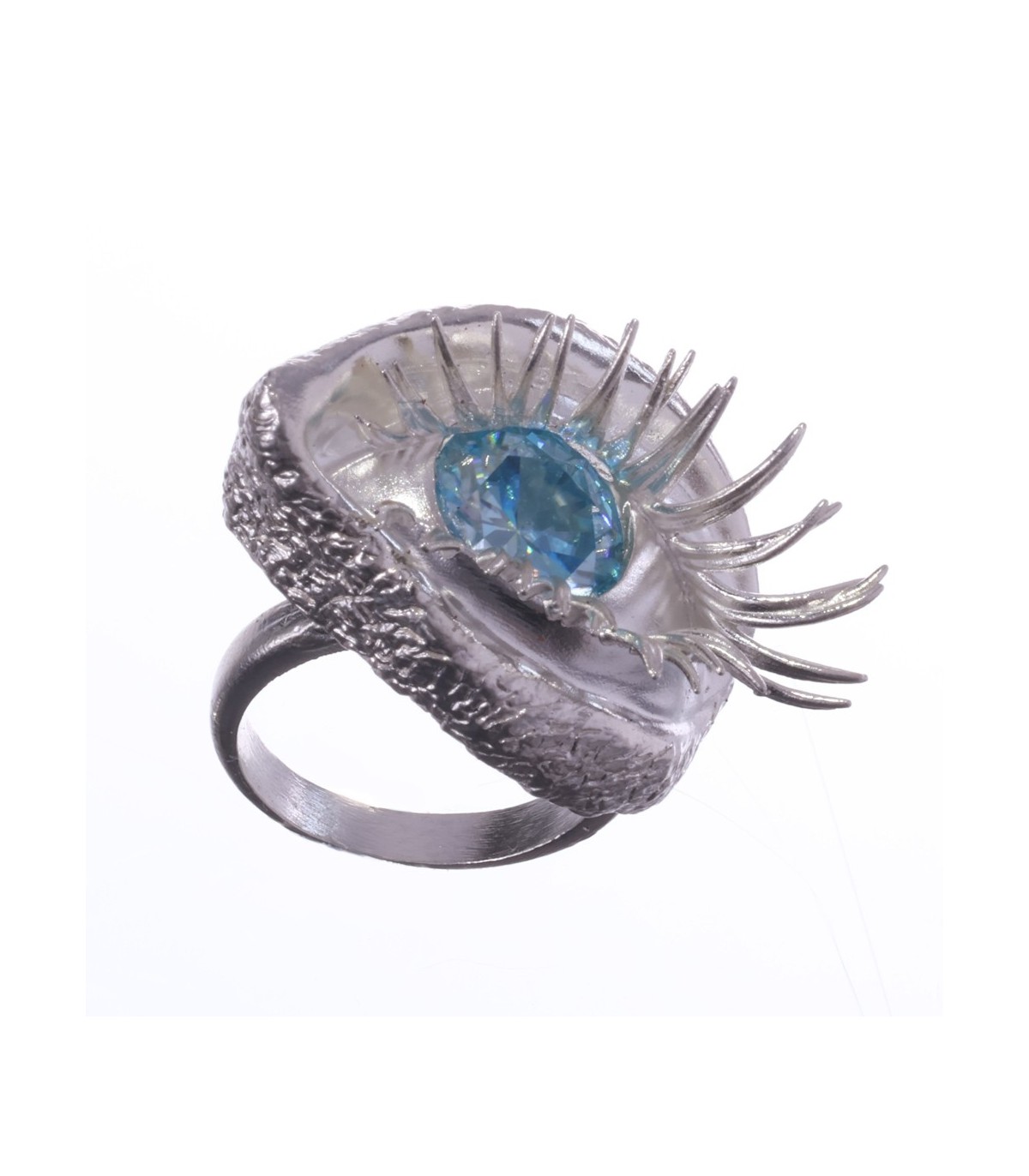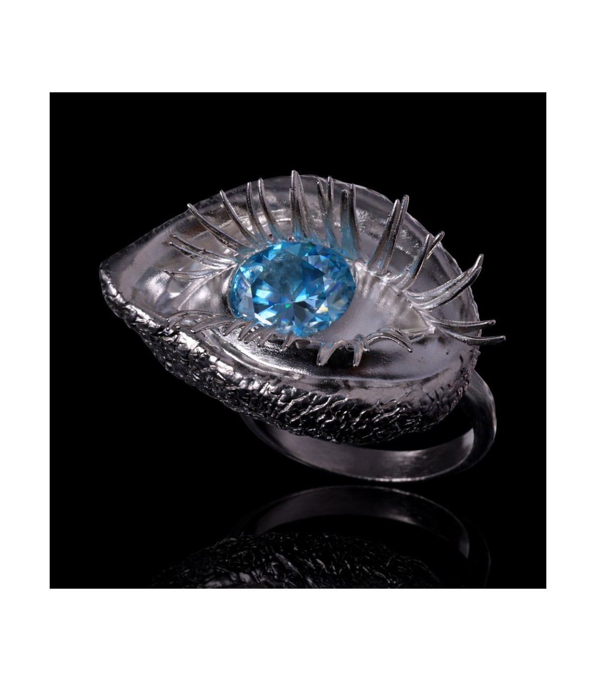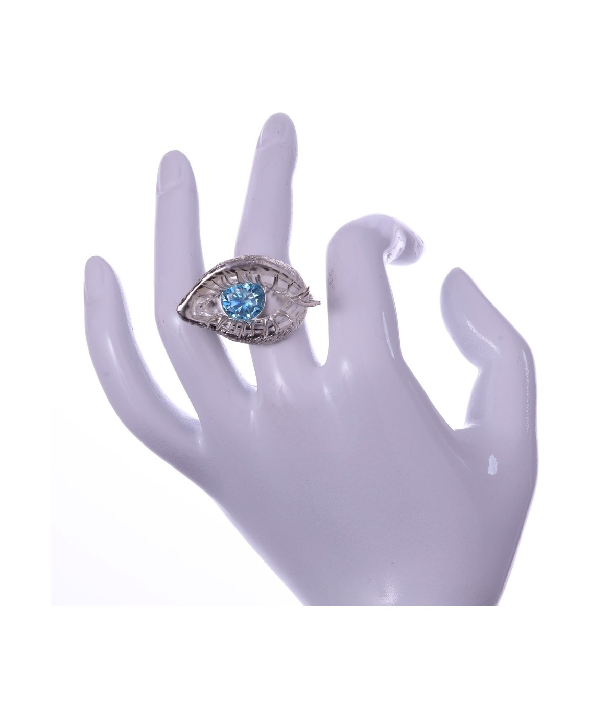 The ring takes on an anatomical eye shape, soft, organic, almost bodily. The eyelids flow naturally, framed by powerful, sensual lashes that give the gaze weight and undeniable allure.
