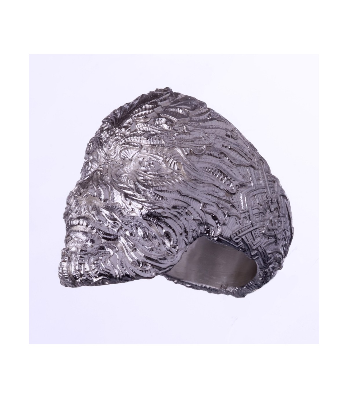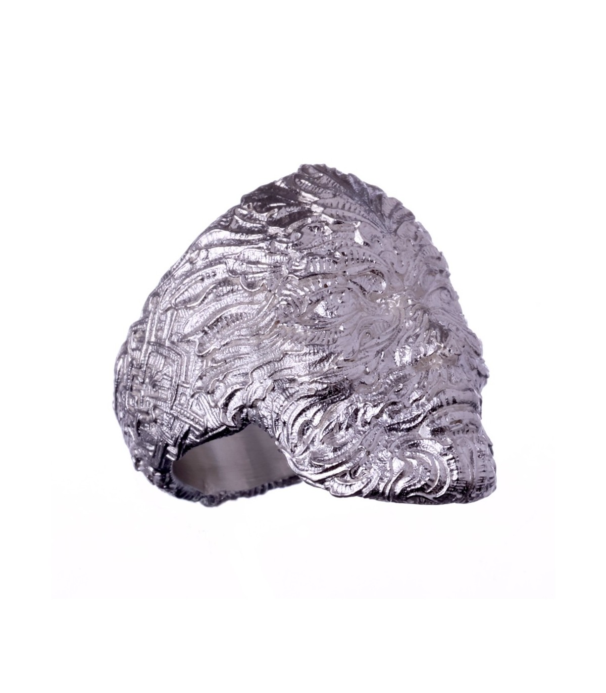Crafted in 925 sterling silver, the ring has a substantial feel that reinforces its meaning. This is not light jewelry meant to disappear. It is designed to be felt, to remind the wearer of strength, resilience, and personal code. The sculpted surface catches light across the contours of the face, giving depth and character that evolve with wear.