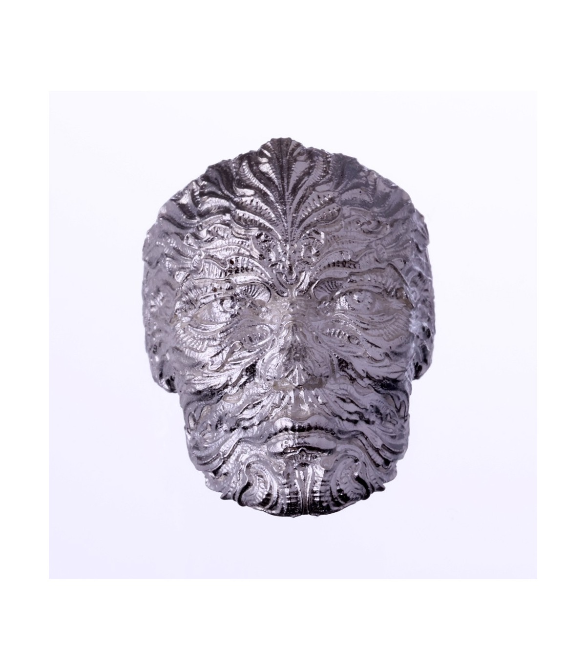 This heavy sterling silver ring translates that myth into sculptural form. The ring features a carved face of Achilles, rendered with strong, deliberate lines that emphasize determination, focus, and controlled ferocity. The expression is not decorative; it is confrontational and timeless, as if the metal itself carries memory and resolve. The weight of the ring is intentional — solid, grounding, and unmistakably present on the hand.