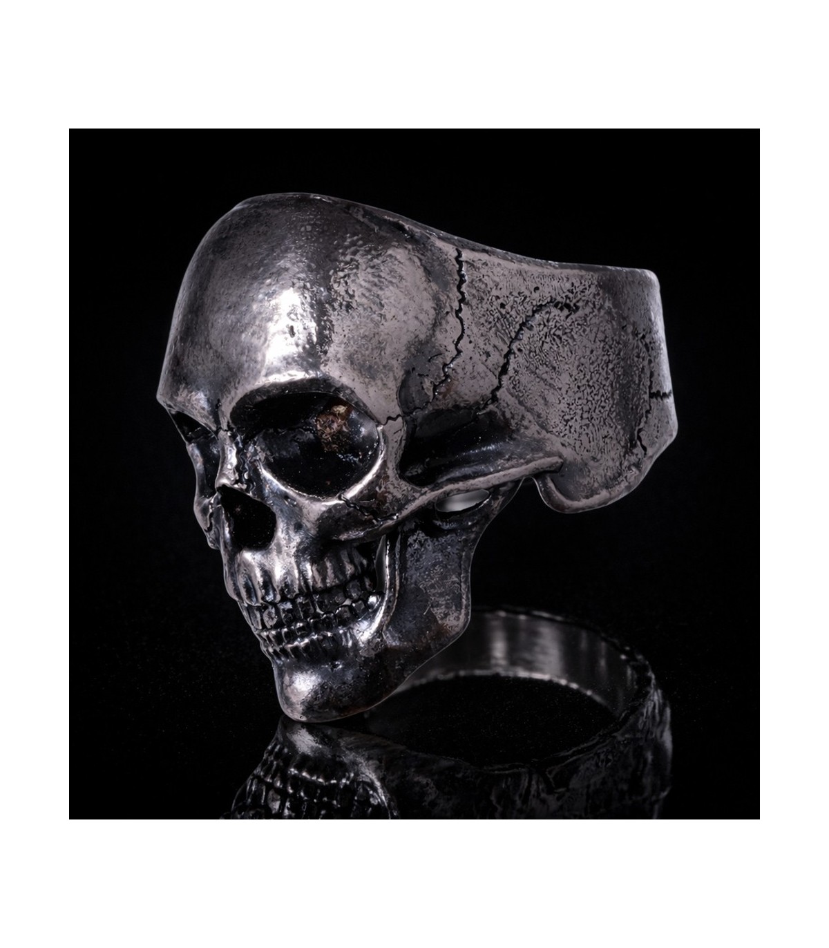This sterling silver signet ring presents an anatomically accurate skull, stripped of ornament and symbolism. Bone, structure, truth. The design is raw and uncompromising, honoring reality without disguise.