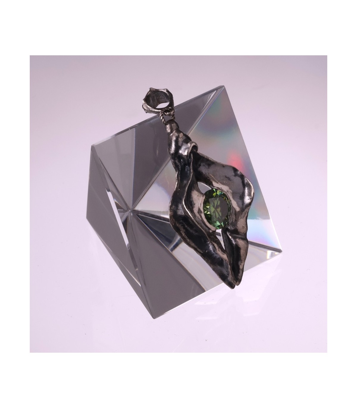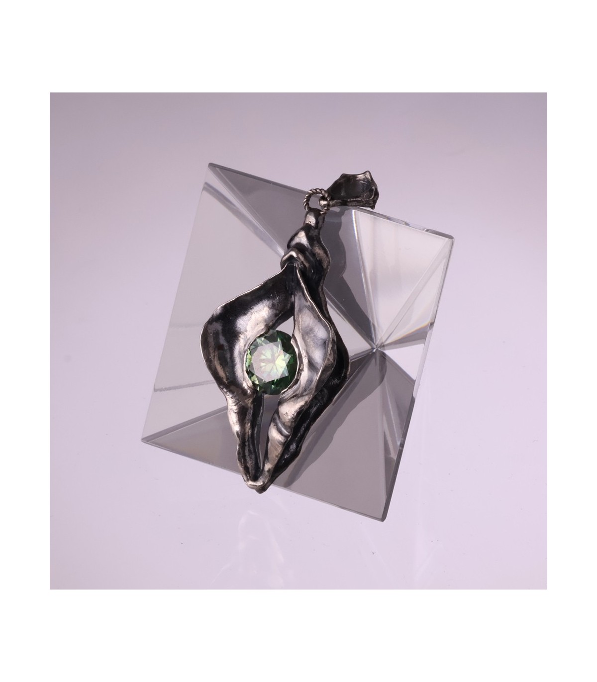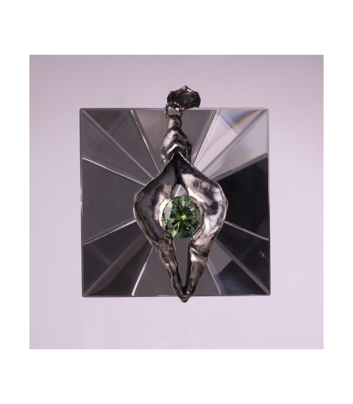This silver pendant honors the vagina as a source of resilience and continuity. Its sculptural form is open and grounded, consciously shaped to celebrate the feminine body as the place where strength is born and sustained. At its center burns a 3-carat moissanite, a stone known for its exceptional brilliance and durability.