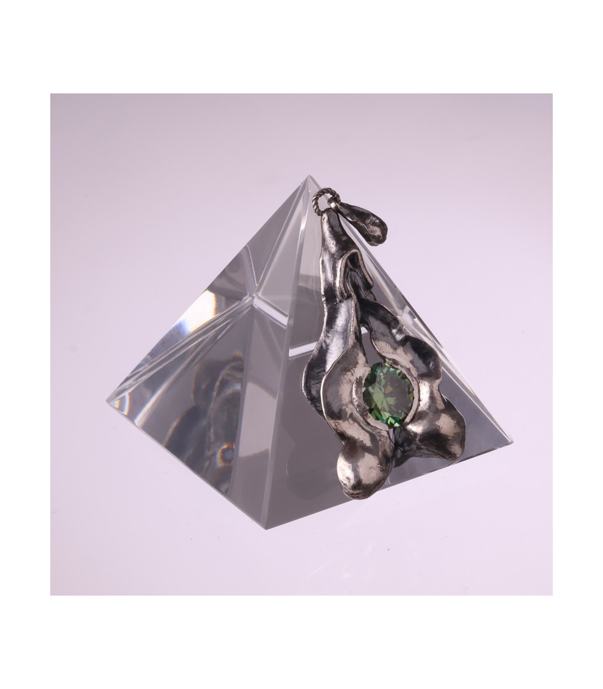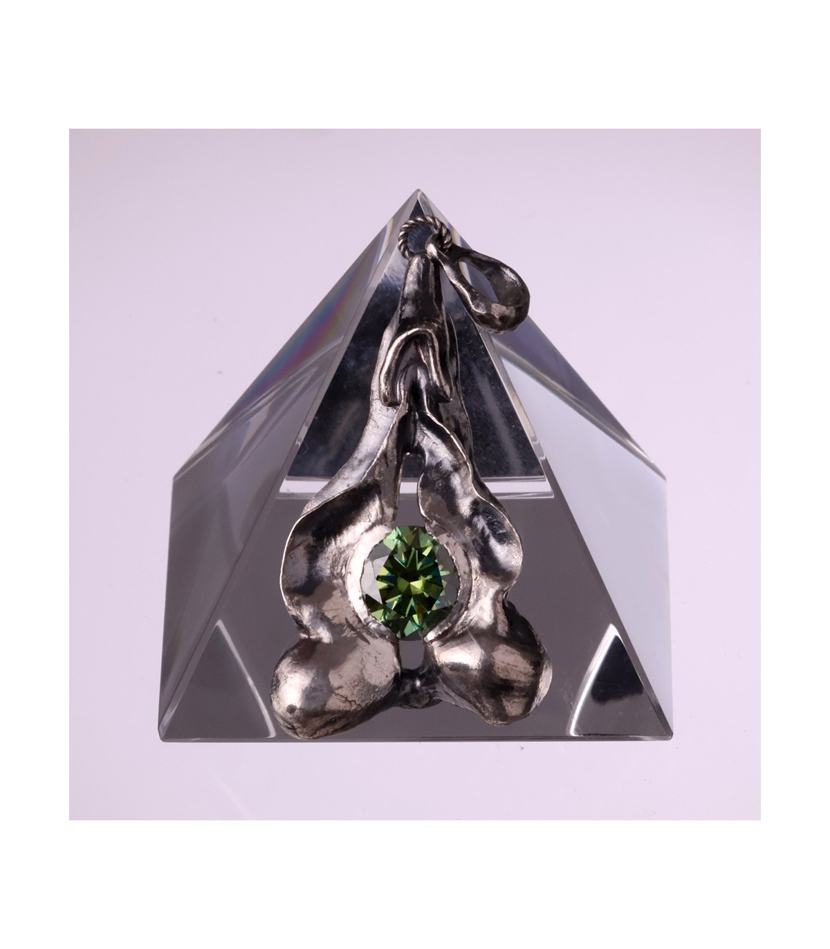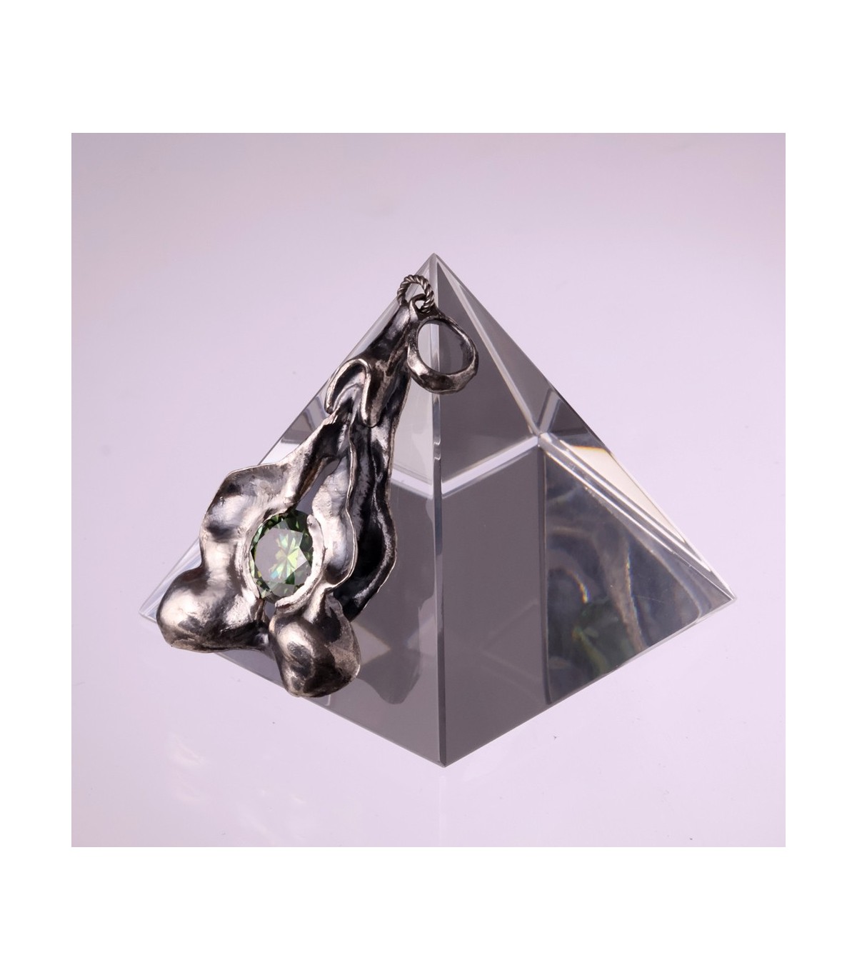 This pendant presents the vagina as a symbol of autonomy and reclaimed power. Its organic silver form is unapologetic, framing a 3-carat moissanite that radiates focused, unwavering light. The stone becomes a statement of presence rather than decoration.