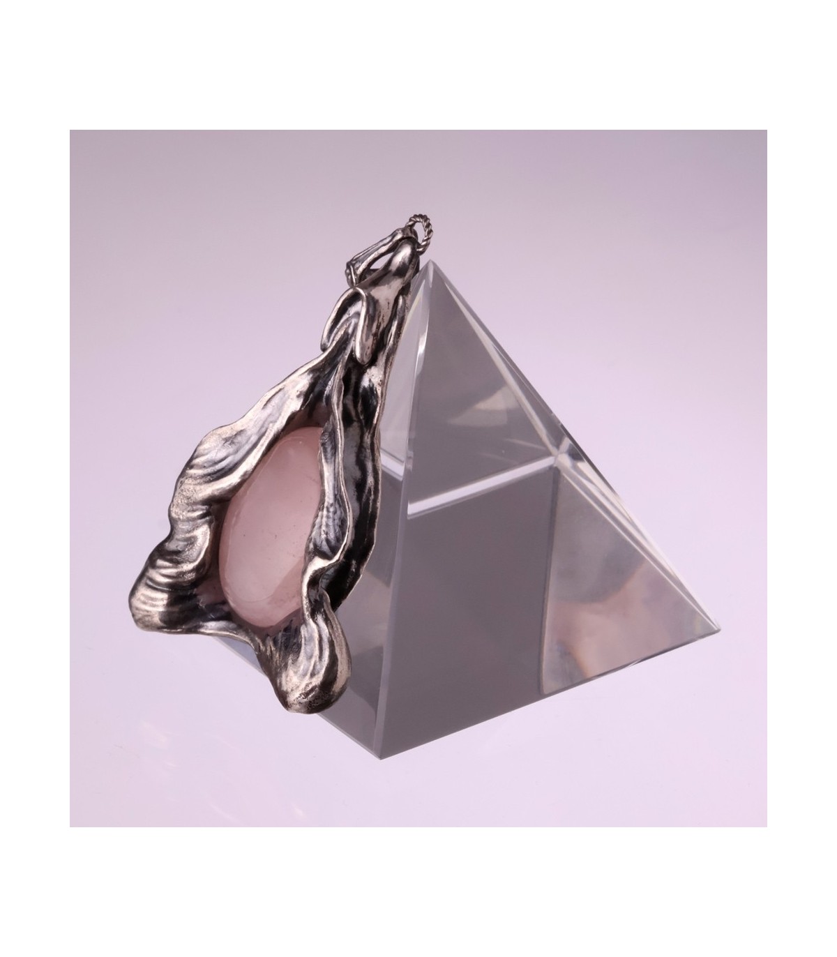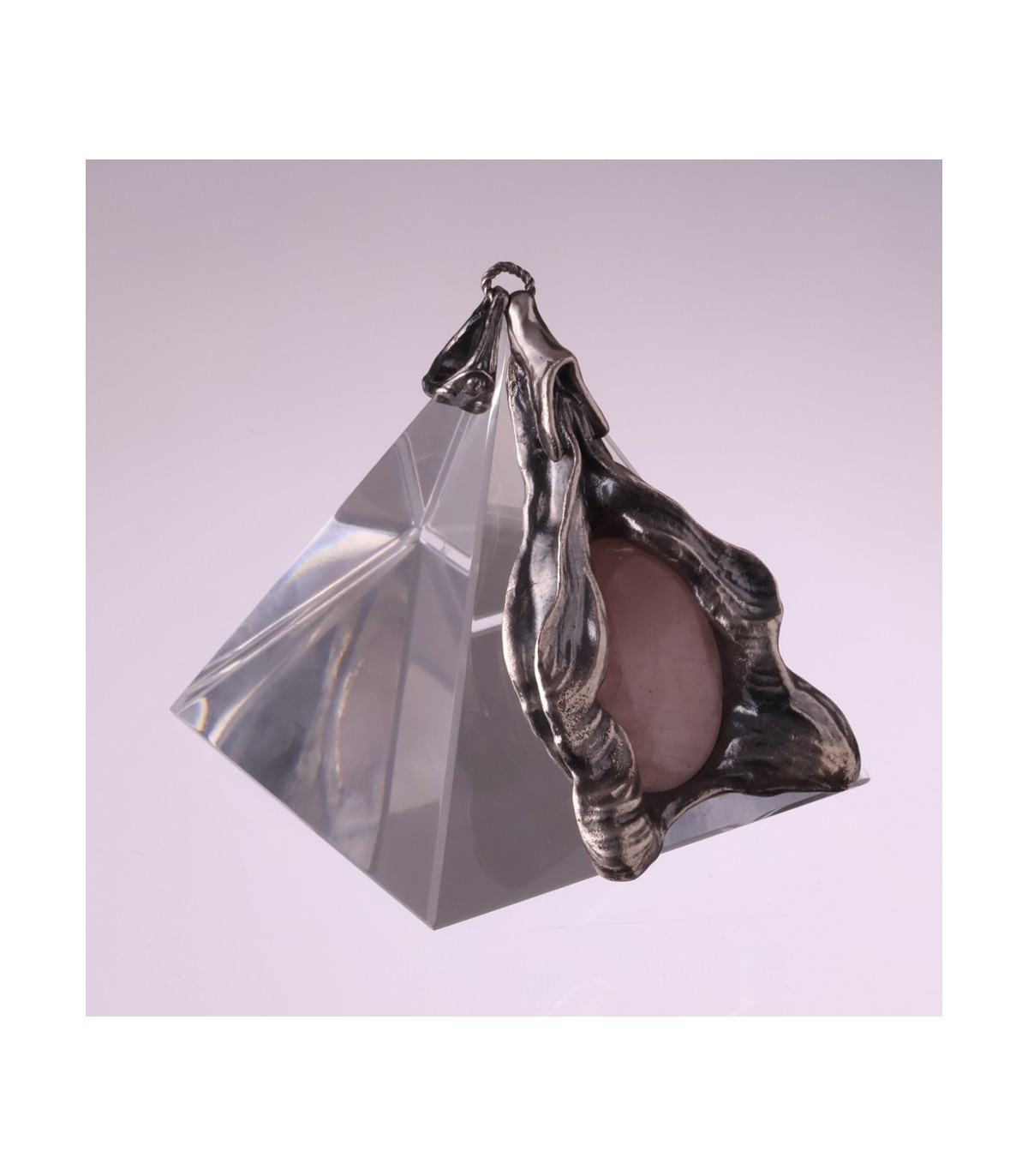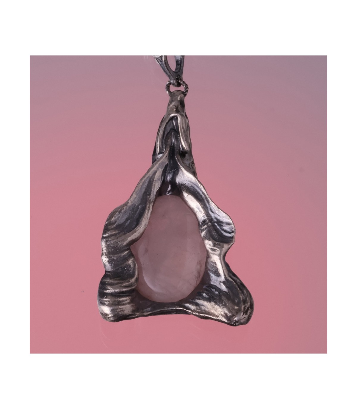 At the center rests a translucent pink quartz, softly illuminated and alive with warmth. The stone acts as the glowing core of the piece, reinforcing the idea of inner radiance. Pink quartz has long been associated with love, emotional healing, compassion, and self-acceptance. In Elektra, it symbolizes the heart-light carried within the feminine body — resilient, nurturing, and enduring.