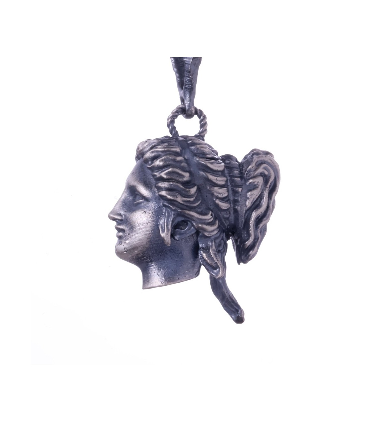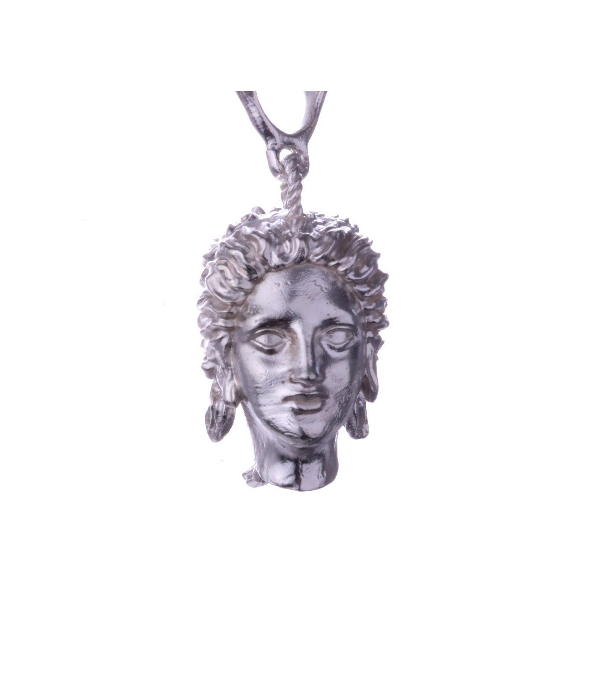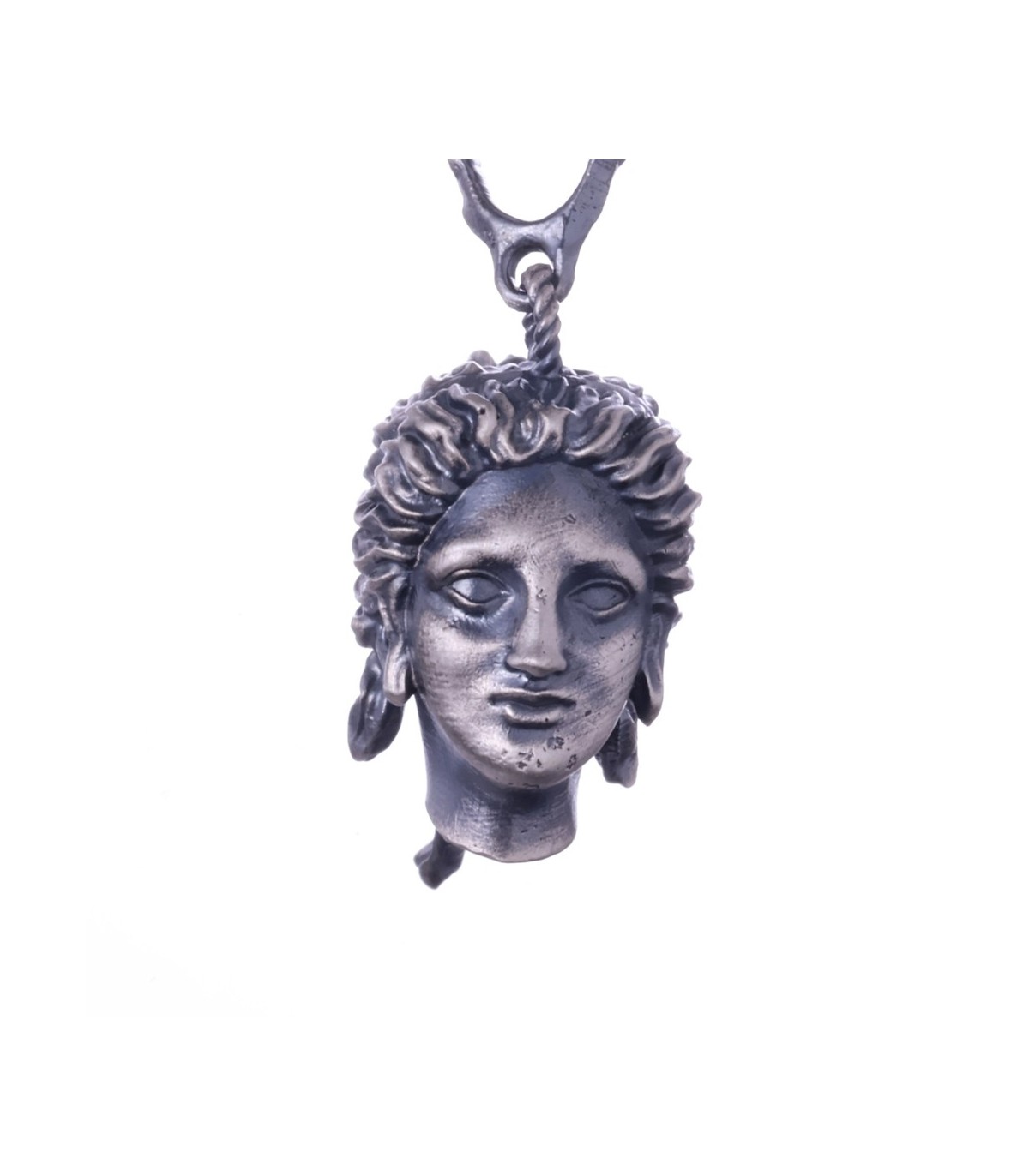 This Daidaleia silver pendant is inspired by the ancient concept of supreme craftsmanship associated with Daedalus and early ritual art. Daidaleia symbolizes creative mastery, innovation, and the union of mind and hand. The sculpted silver head has an archetypal, timeless quality, making this pendant a tribute to artistry and human ingenuity.