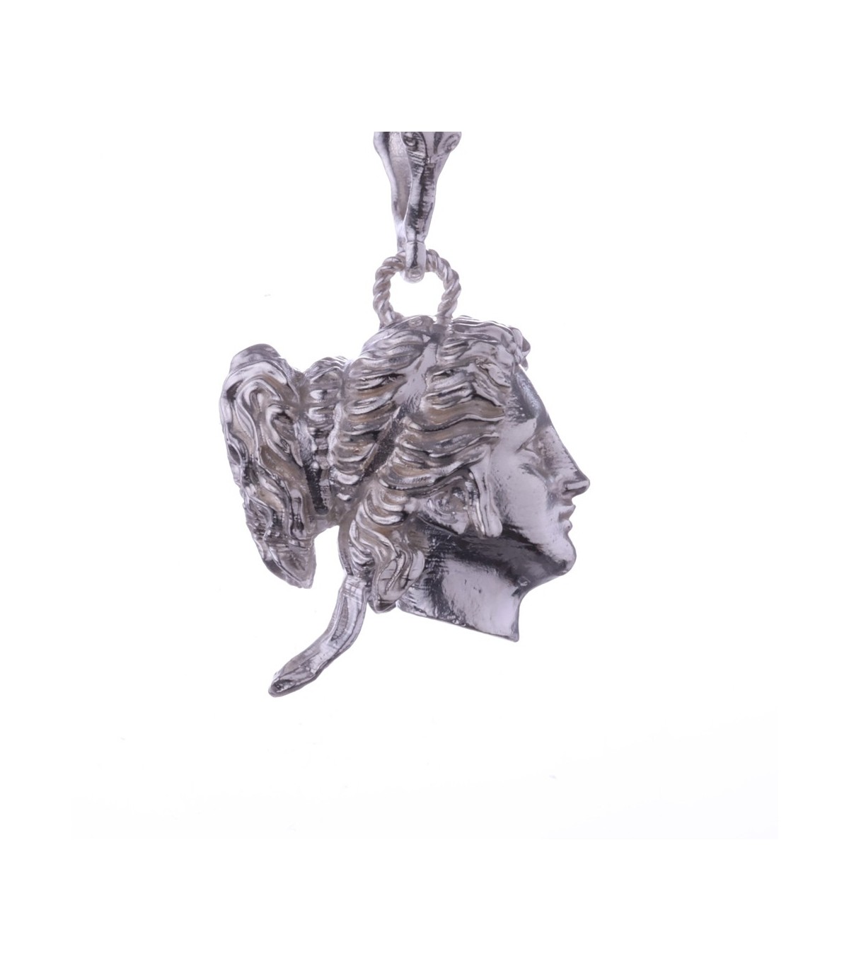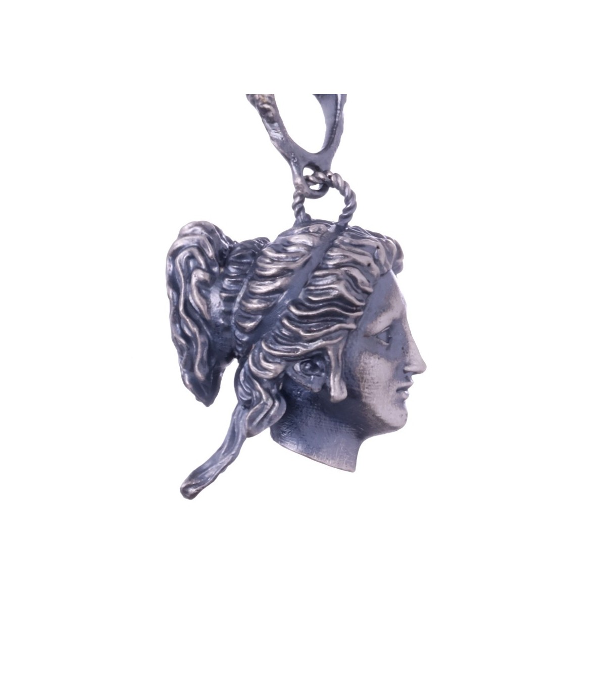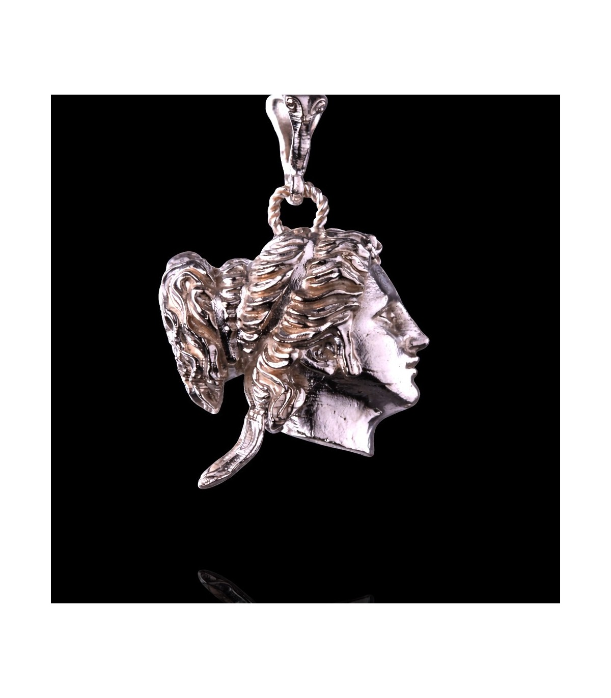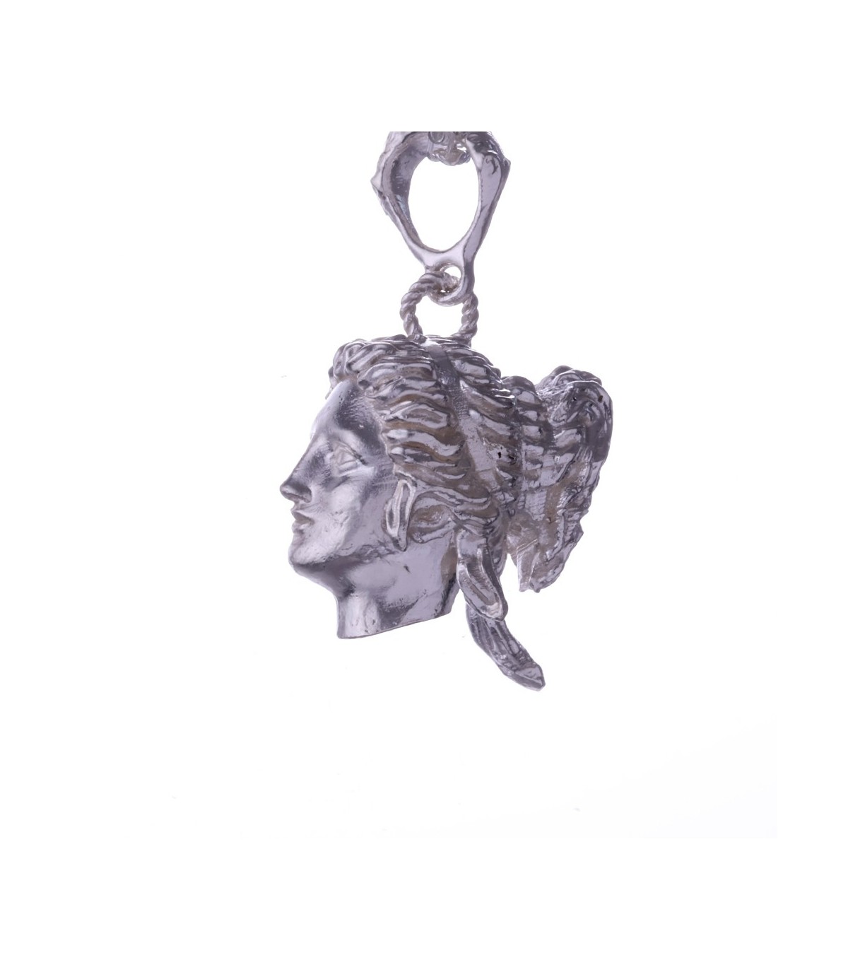 This Daidaleia silver pendant is inspired by the ancient concept of supreme craftsmanship associated with Daedalus and early ritual art. Daidaleia symbolizes creative mastery, innovation, and the union of mind and hand. The sculpted silver head has an archetypal, timeless quality, making this pendant a tribute to artistry and human ingenuity.