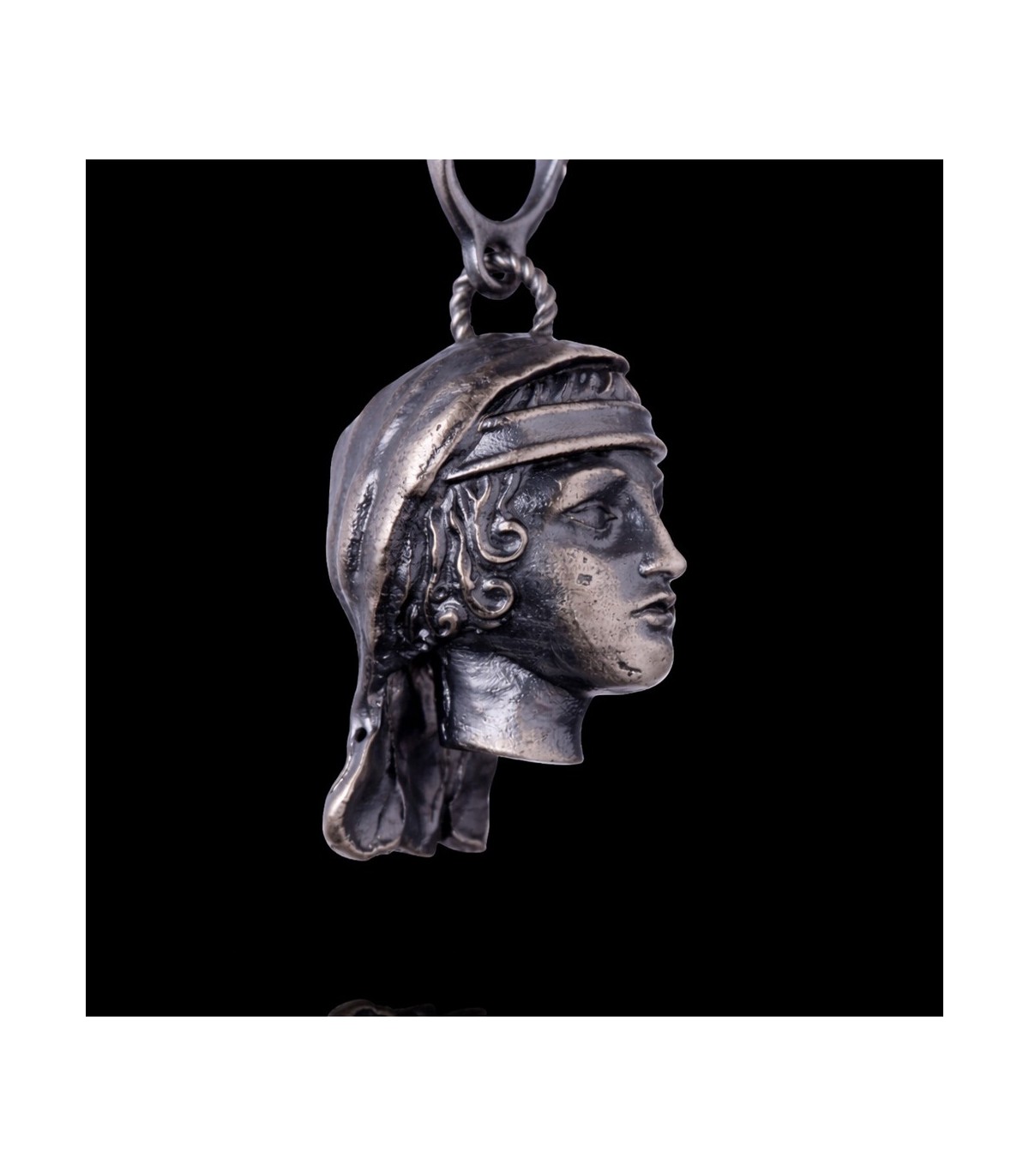 The Hebe silver pendant portrays the goddess of youth and renewal. Hebe symbolized freshness, vitality, and the everlasting beginning of life. The delicately sculpted silver head gives this pendant a light yet refined presence. An elegant piece of silver jewelry representing energy, optimism, and rebirth.