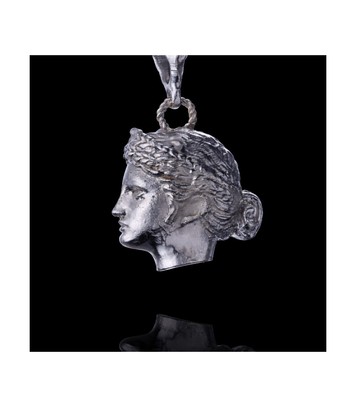 The Klytaimnestra silver pendant presents one of the most complex figures of Greek tragedy. Queen of Mycenae, she symbolized betrayal, vengeance, and female agency shaped by injustice. The expressive silver carving captures inner tension and emotional depth. A striking piece of artistic silver jewelry rooted in ancient drama.