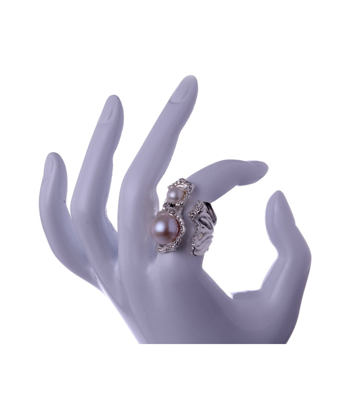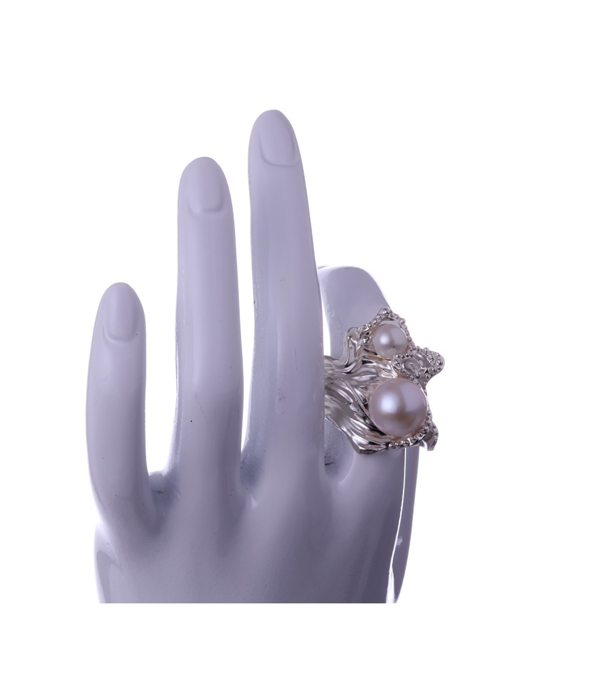 Maris Argentaria is a silver pearl ring for those who value natural elegance and individuality. The contrast of two pearls in different sizes makes each ring feel alive and personal. It is a piece that draws attention quietly, perfect for everyday wear or moments when subtle beauty speaks louder than excess.