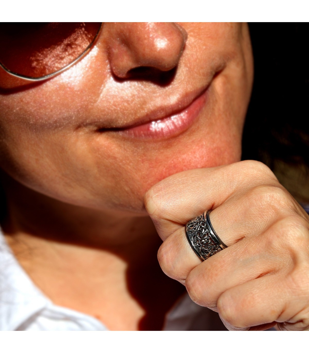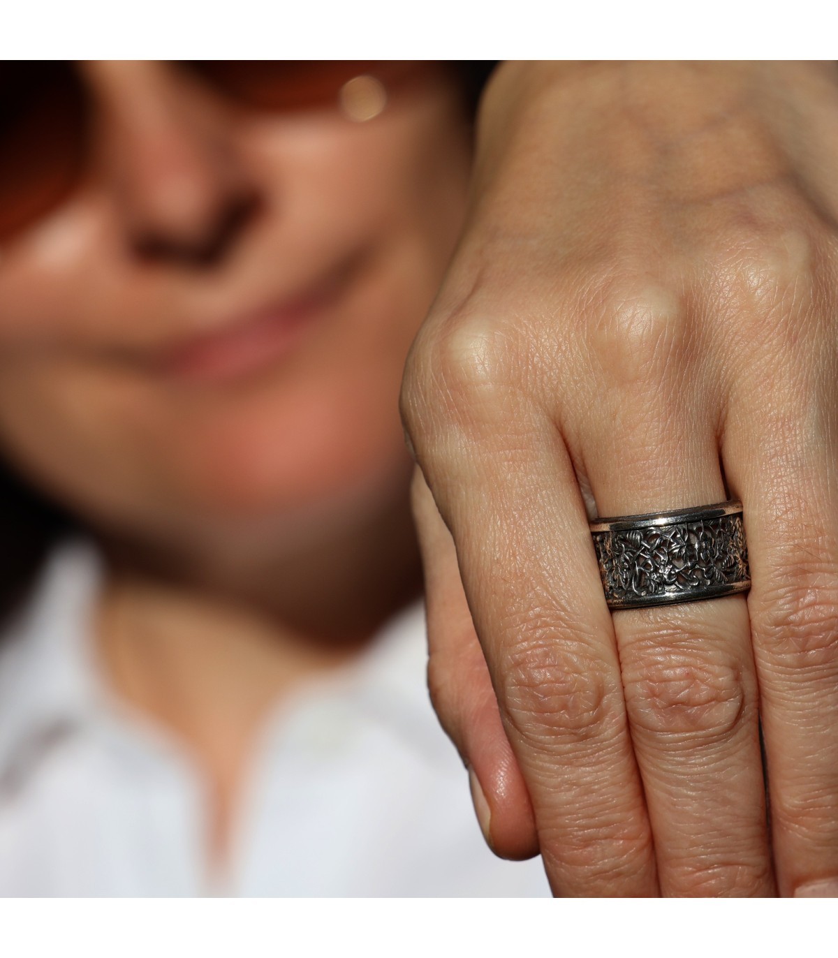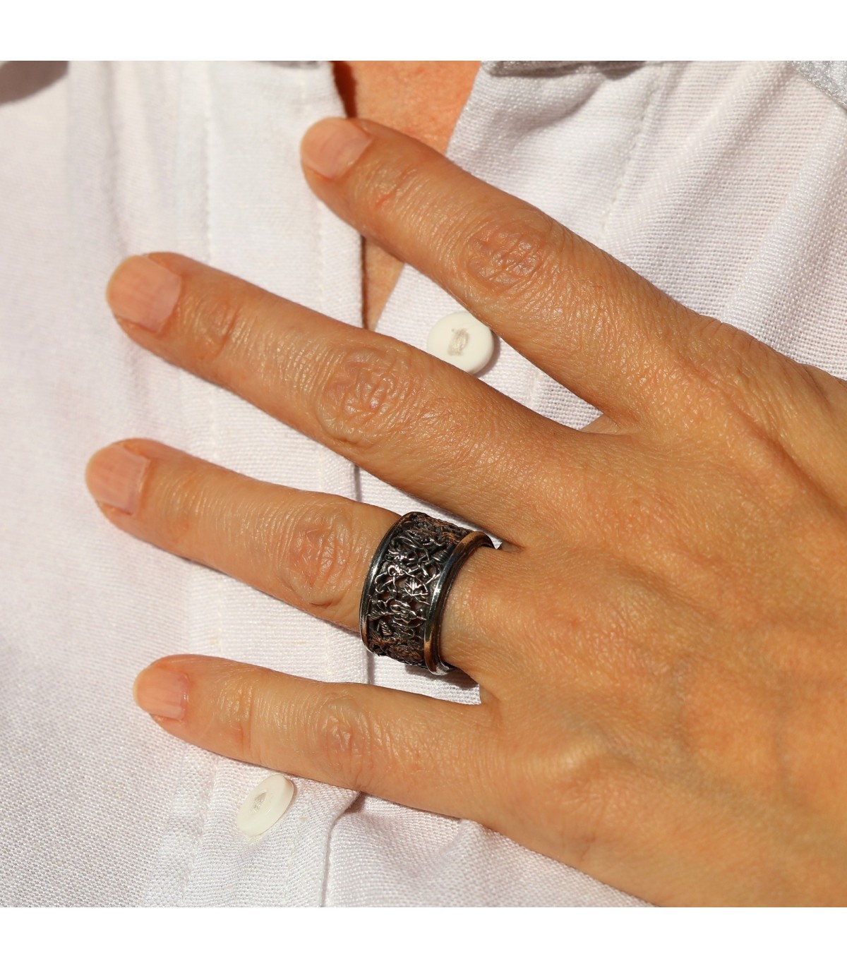 Silver Ring with Sculpted Ornament TENAX