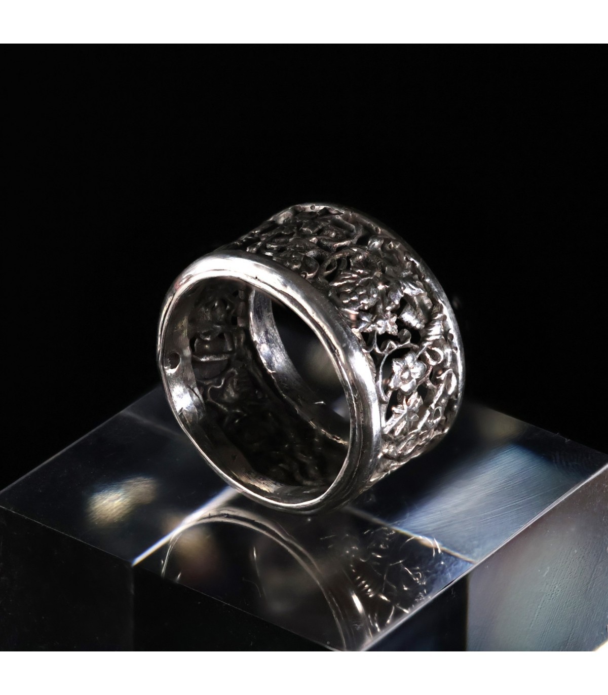 Silver Ring with a Sculpted Floral Ornament
