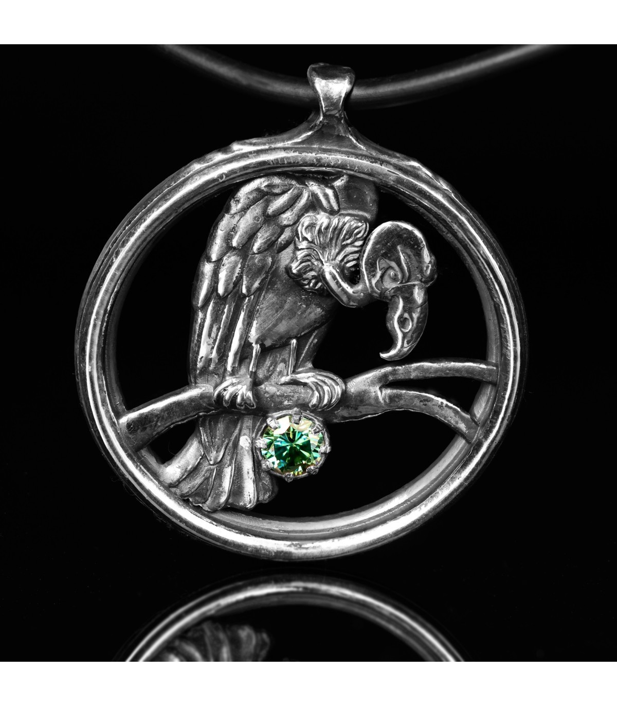 Silver Pendant with Moissanite Stone in the Shape of a Bird