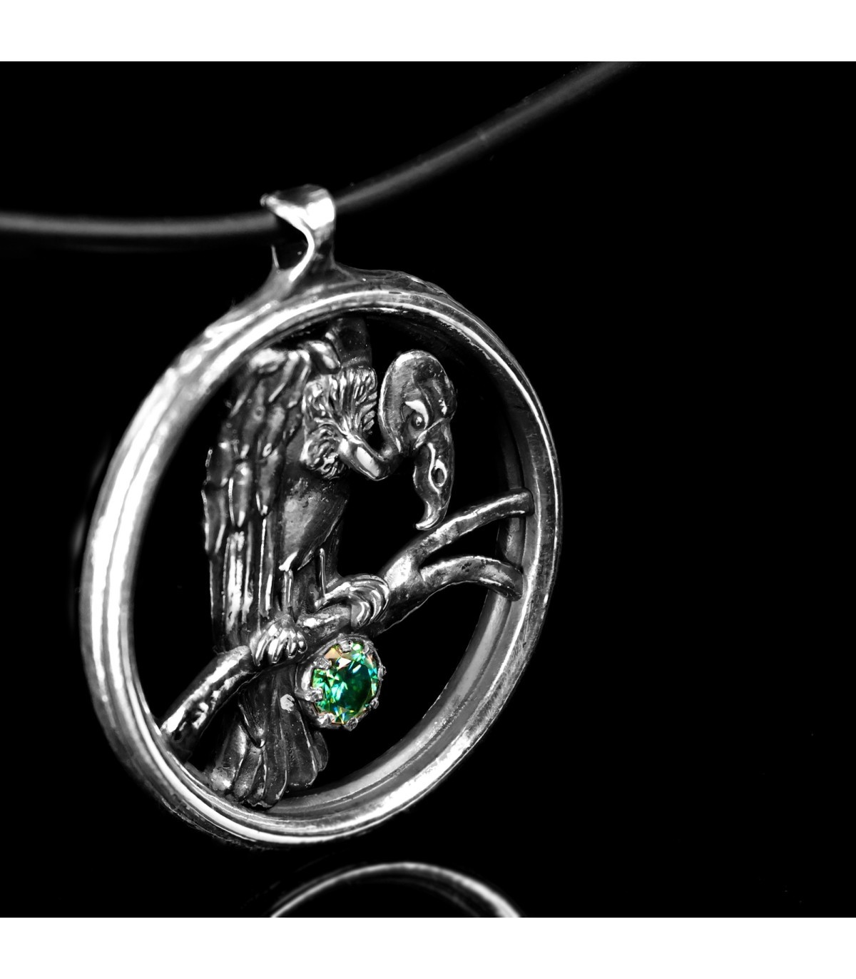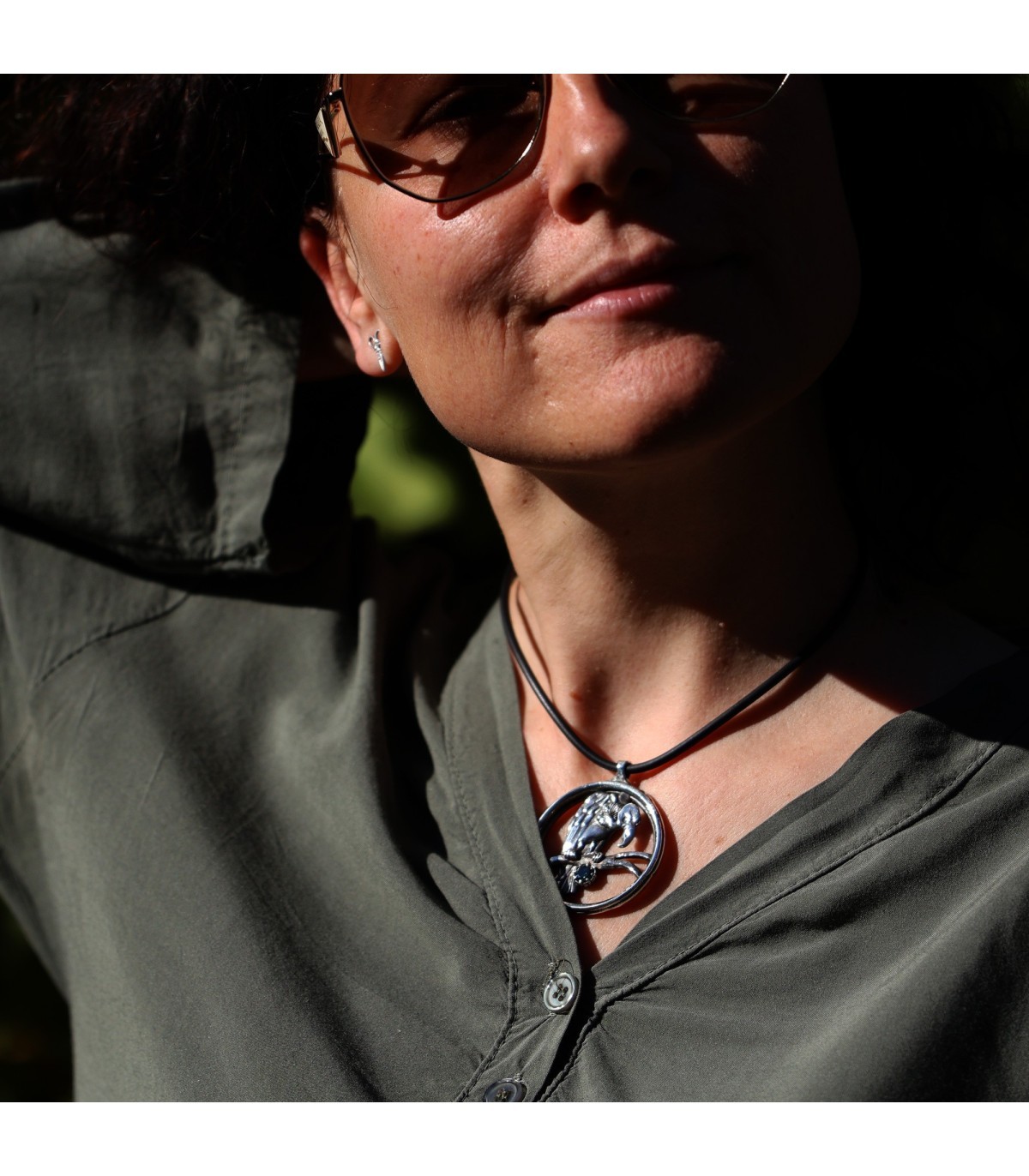 The exclusive silver pendant PRAEVALEO is a unique accessory that stands out for anyone who values originality and sophistication. The name PRAEVALEO comes from Latin, meaning "to prevail" or "to excel," symbolizing strength, independence, and courage. The pendant depicts a majestic vulture perched on a branch, representing a distanced view of the world and a perspective from above.