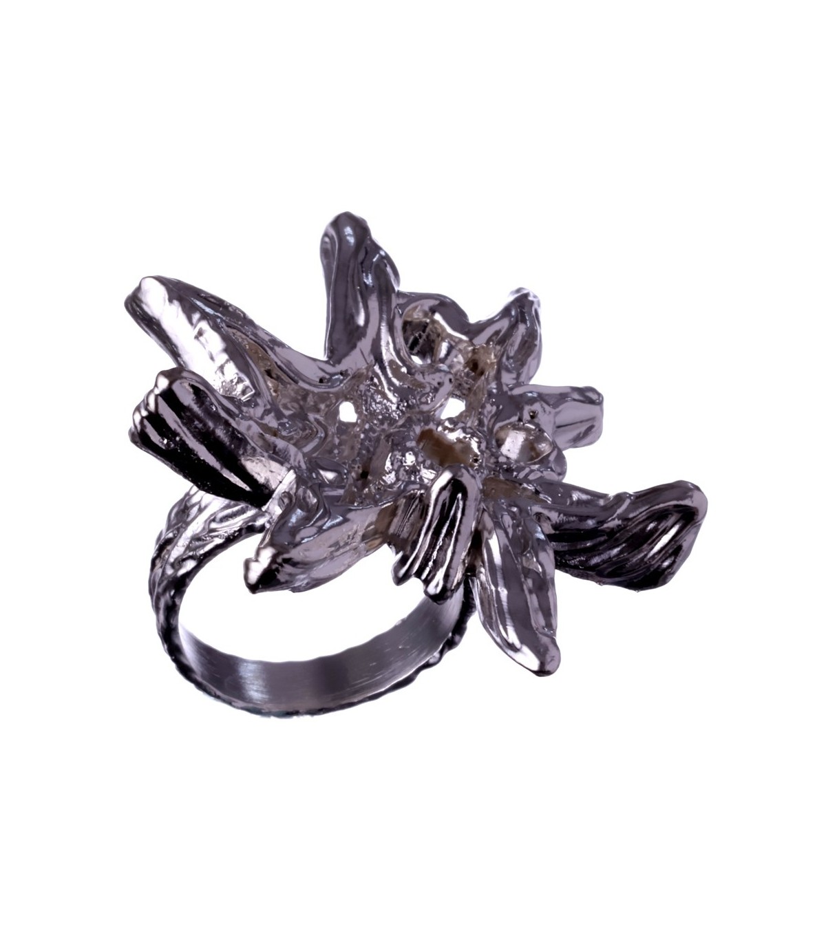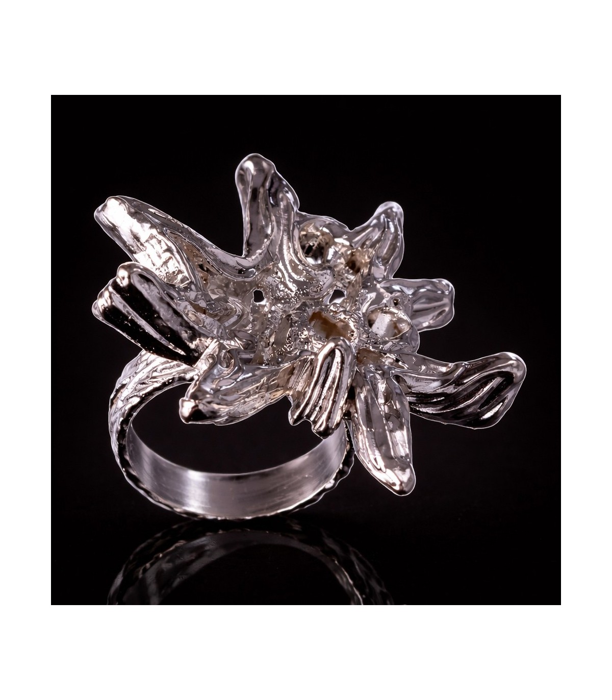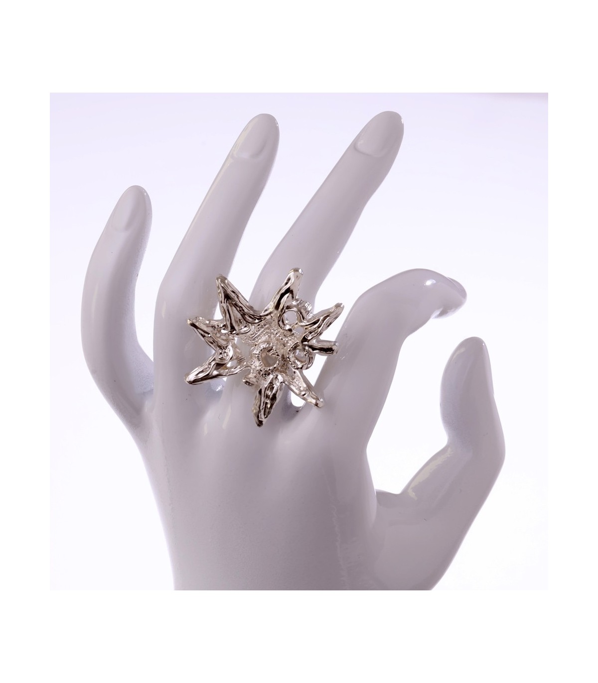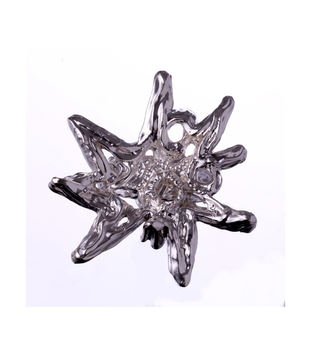 Its shape reflects the natural irregularity of snow — not symmetrical, not perfect, but harmonious. The white silver remains clean and luminous.