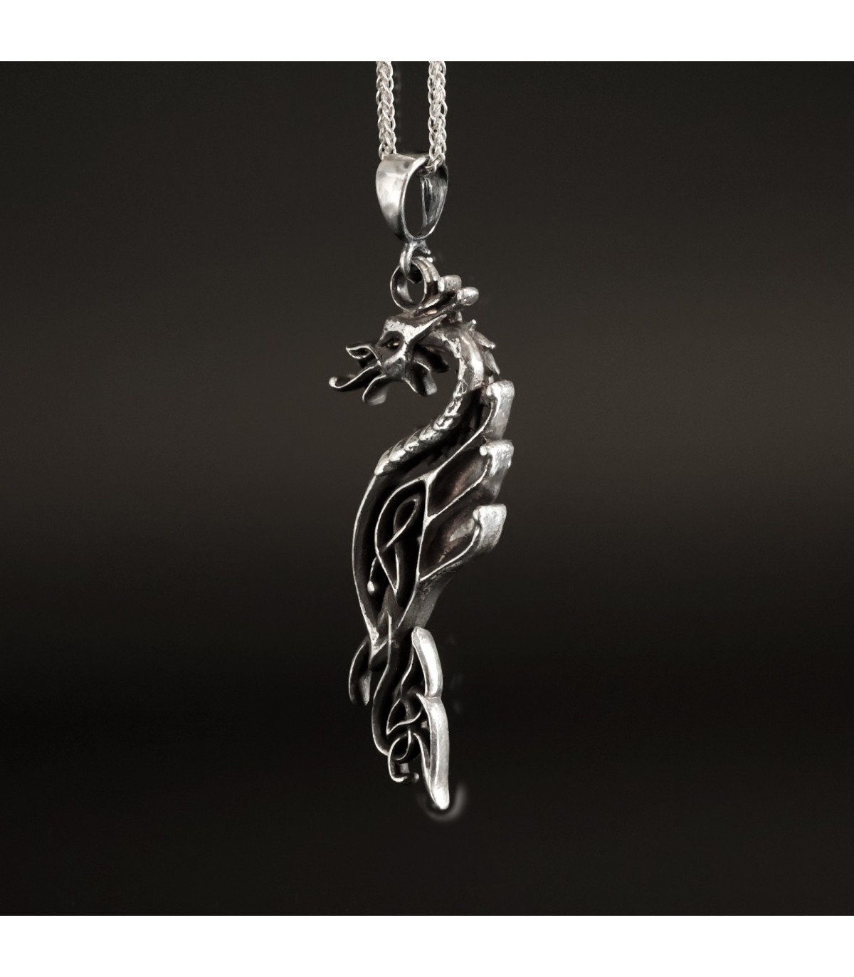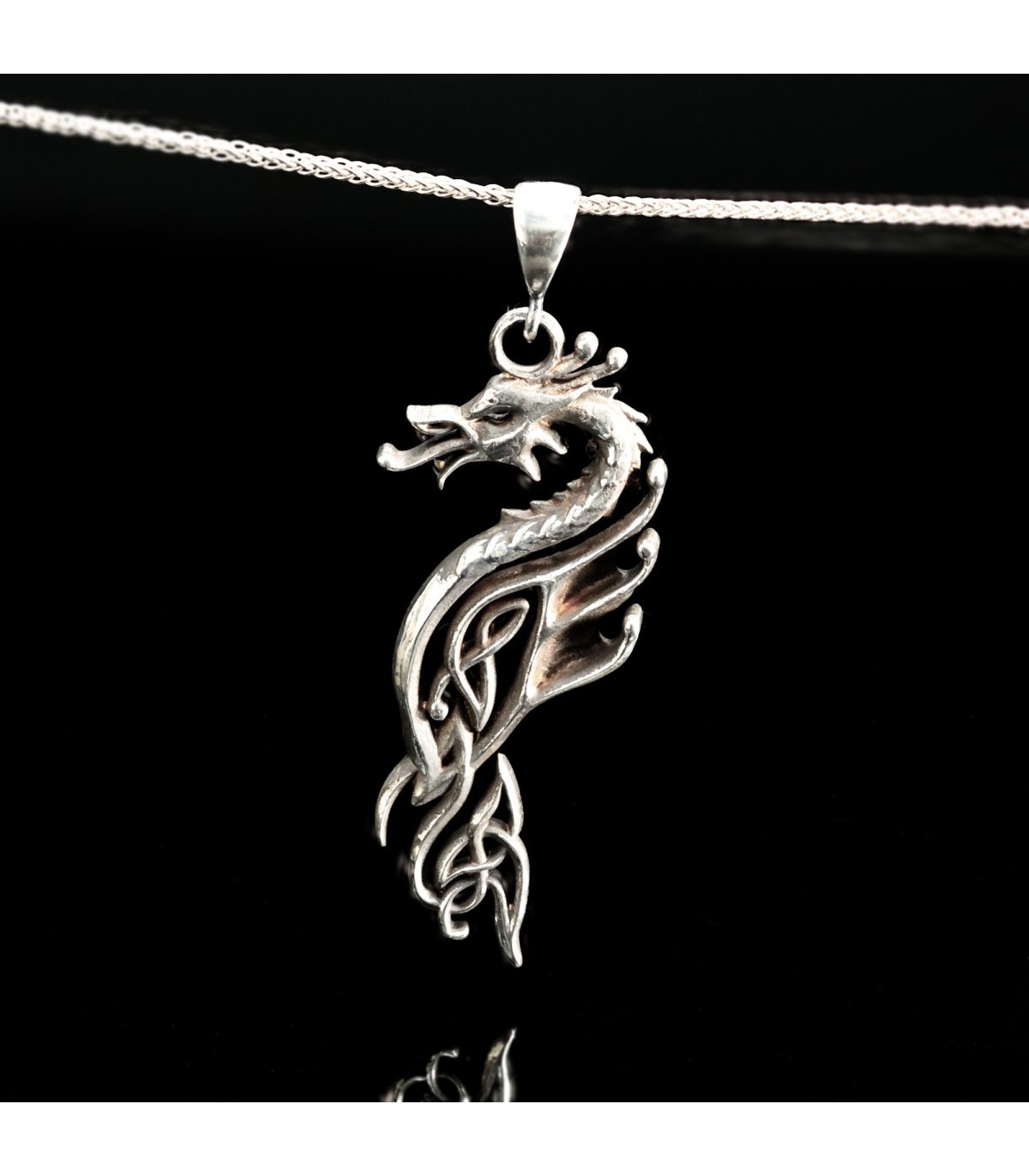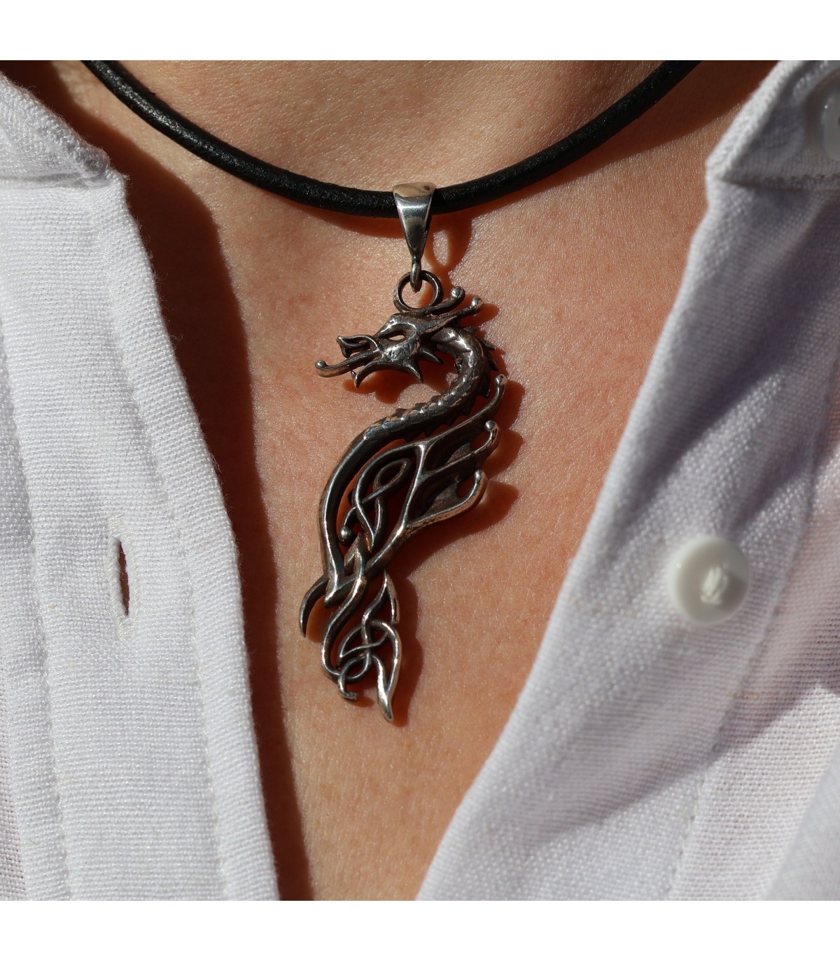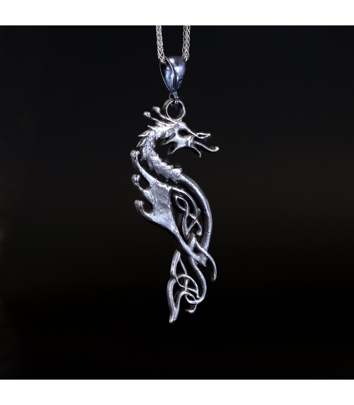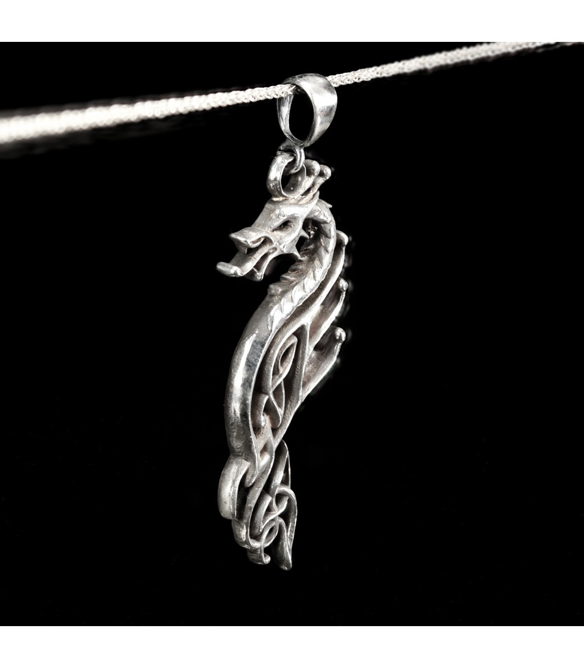 The unique, intricate design showcases exceptional attention to detail, giving the dragon’s form complexity and depth. The delicate Celtic lines intertwine harmoniously, giving the pendant a magical allure that draws the eye and highlights the mystical aura of the wearer. This is jewelry for those who value uniqueness and want a talisman that enhances confidence and courage.