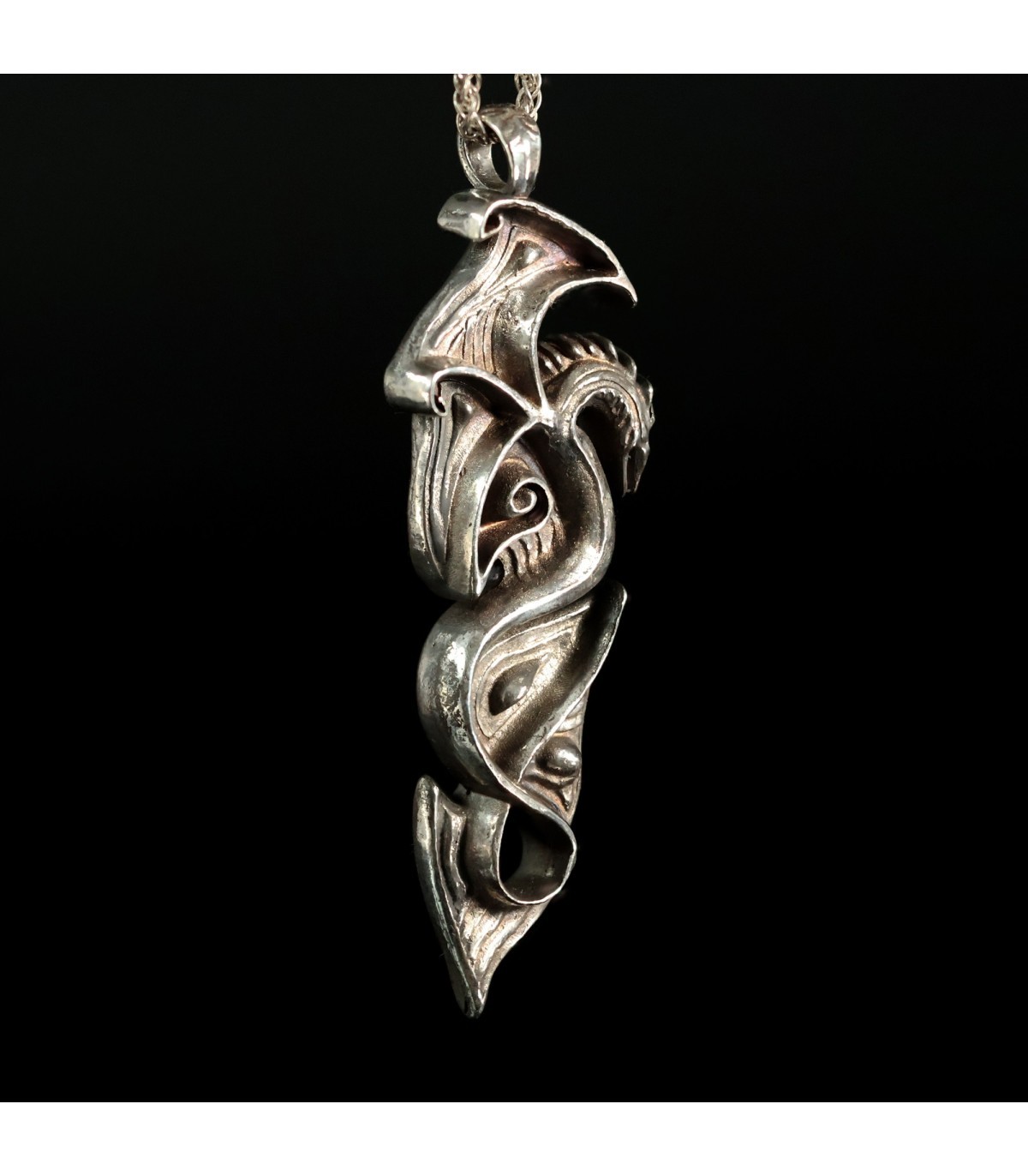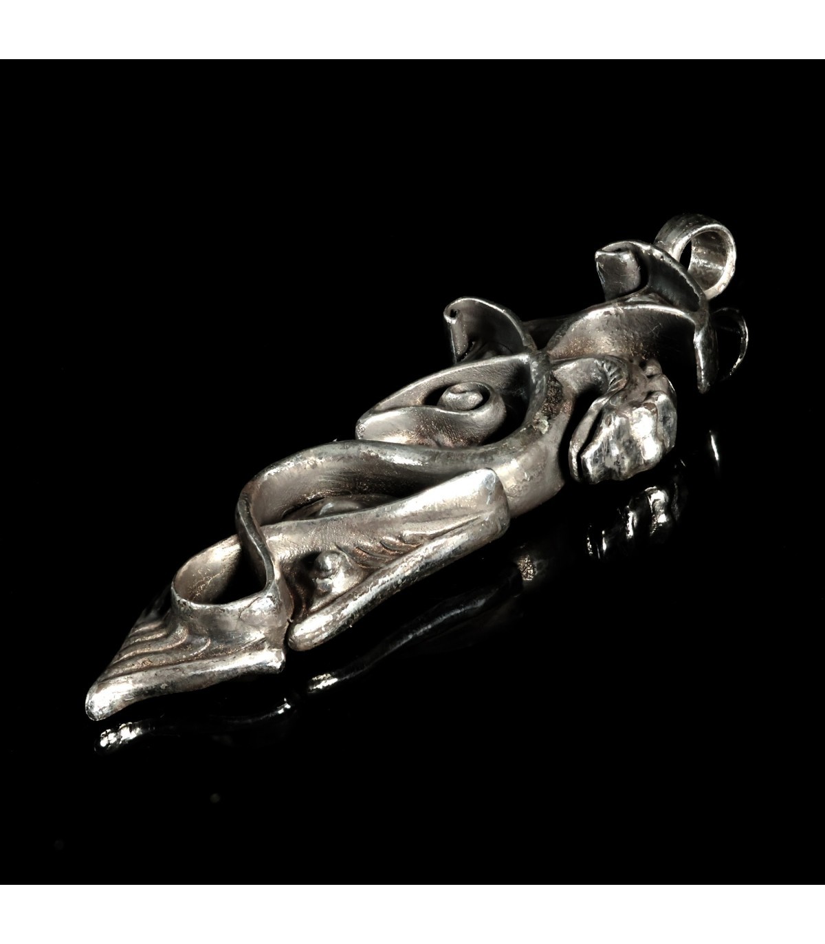 Discover the exquisite silver pendant POSITOR – a talisman crafted with passion and precision, shaped as a winged Celtic dragon. This unique pendant captivates the eye, blending the power of ancient Celtic symbols with exceptional craftsmanship. The name POSITOR, derived from Latin, means “creator” or “one who establishes”,  perfectly capturing the essence of this jewelry piece – a symbol of creative force, inspiration, and fearlessness.