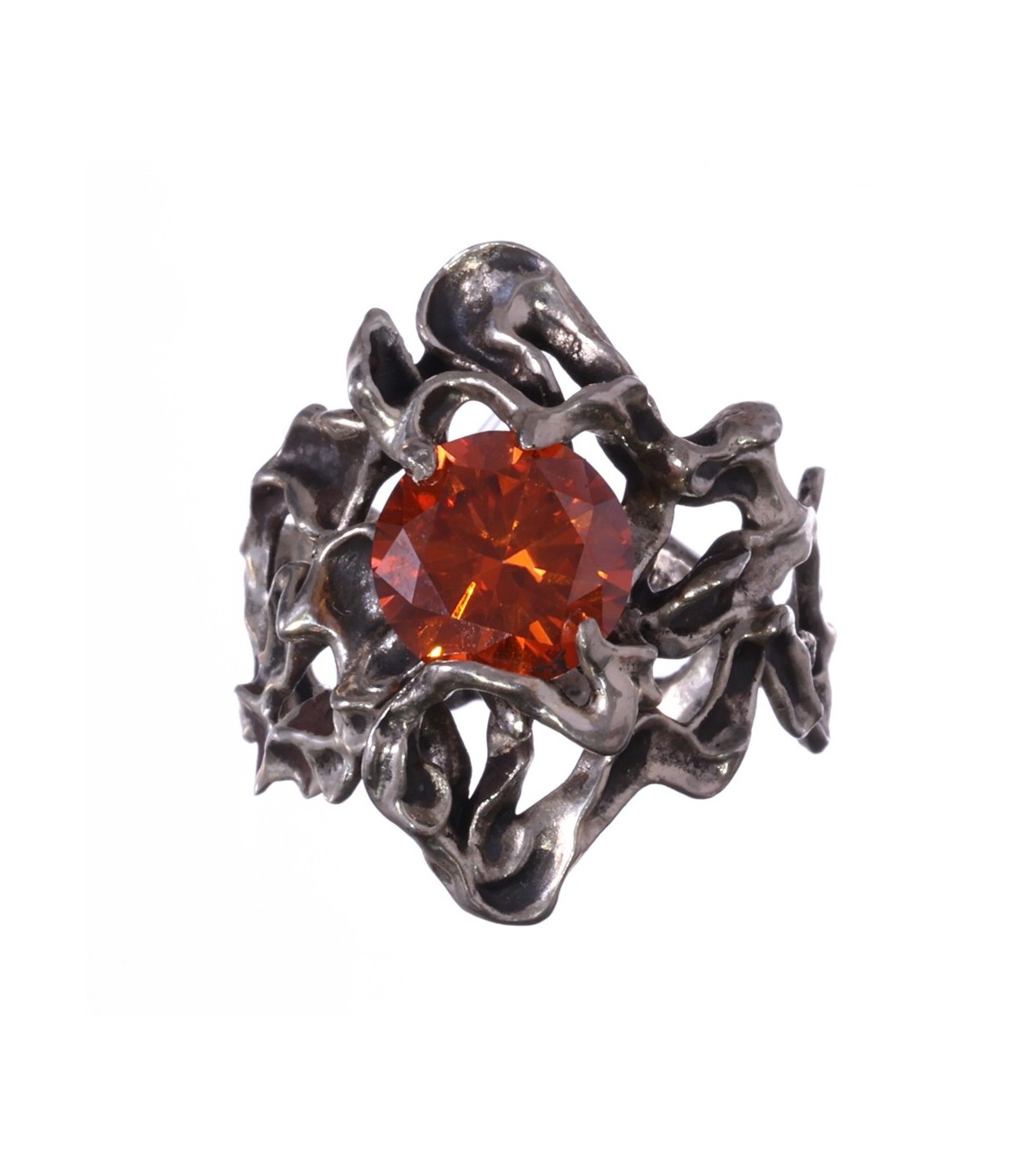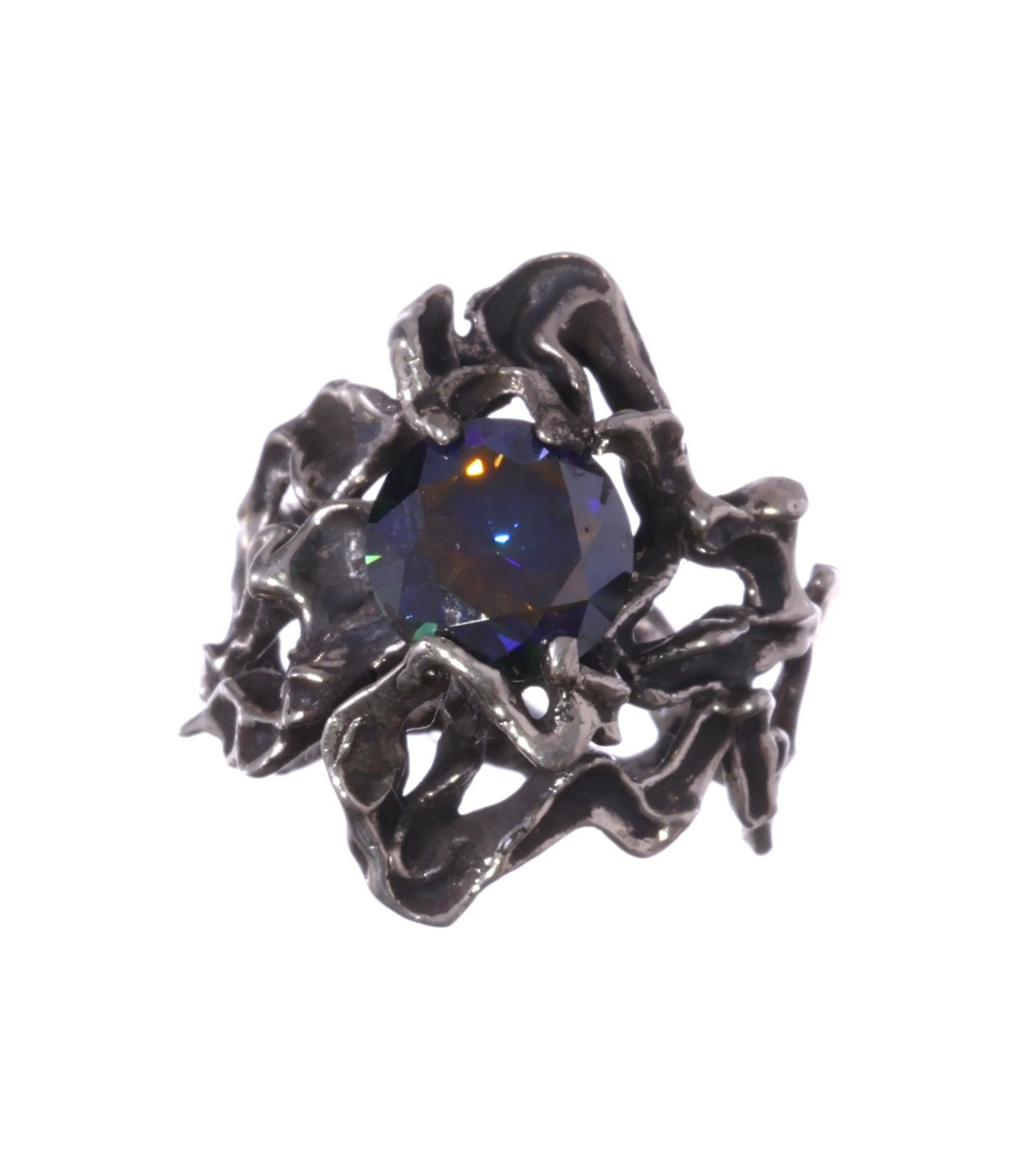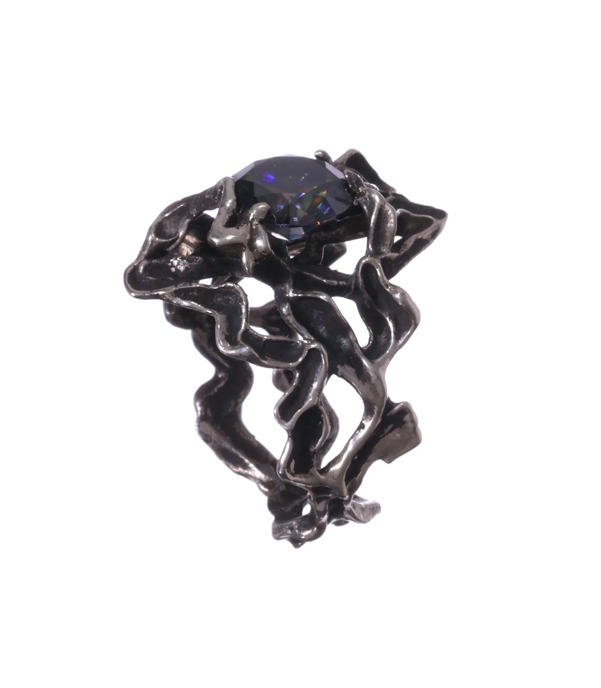 The silver can be finished in high polish for a luminous, fluid effect or oxidized to enhance contrast and highlight every sculpted contour. Both finishes emphasize the handcrafted nature of the ring, ensuring that each piece remains unique.