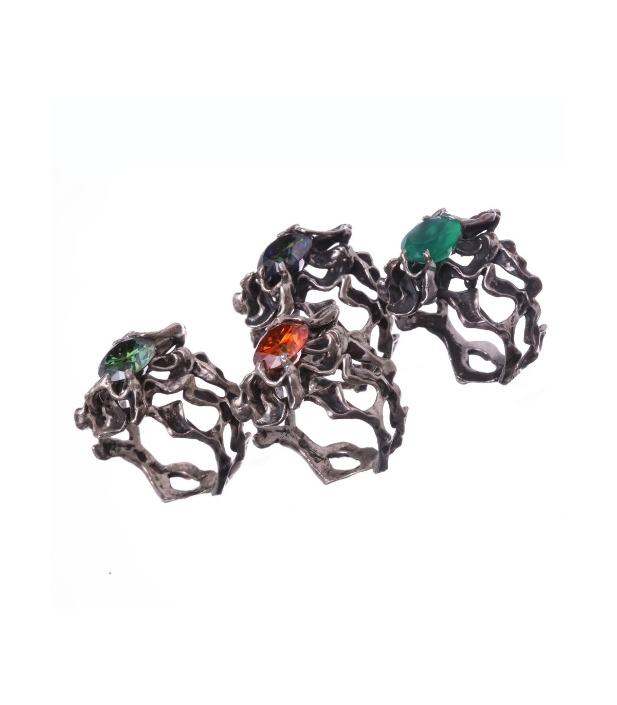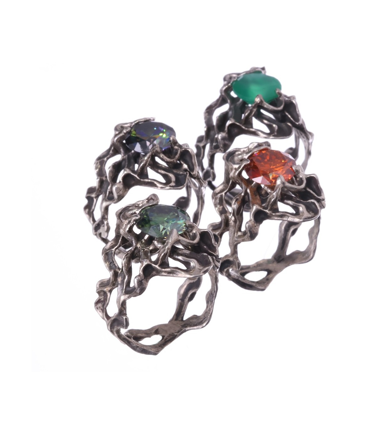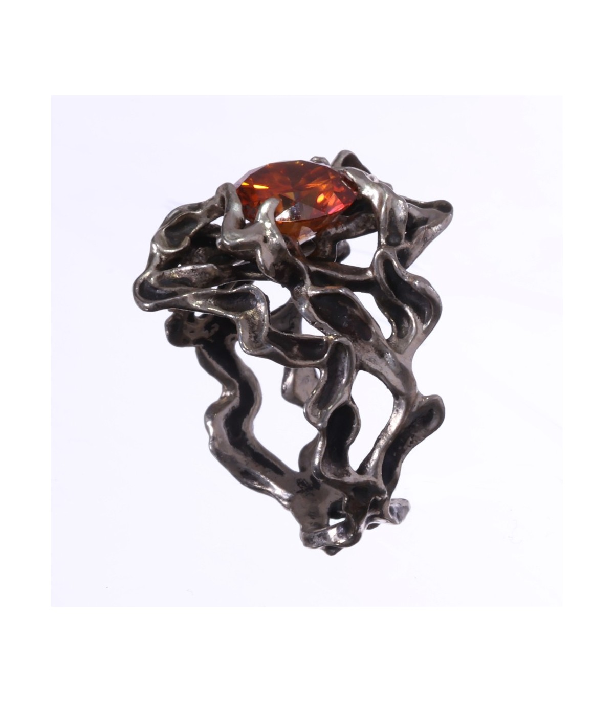 The silver can be finished in high polish for a luminous, fluid effect or oxidized to enhance contrast and highlight every sculpted contour. Both finishes emphasize the handcrafted nature of the ring, ensuring that each piece remains unique.