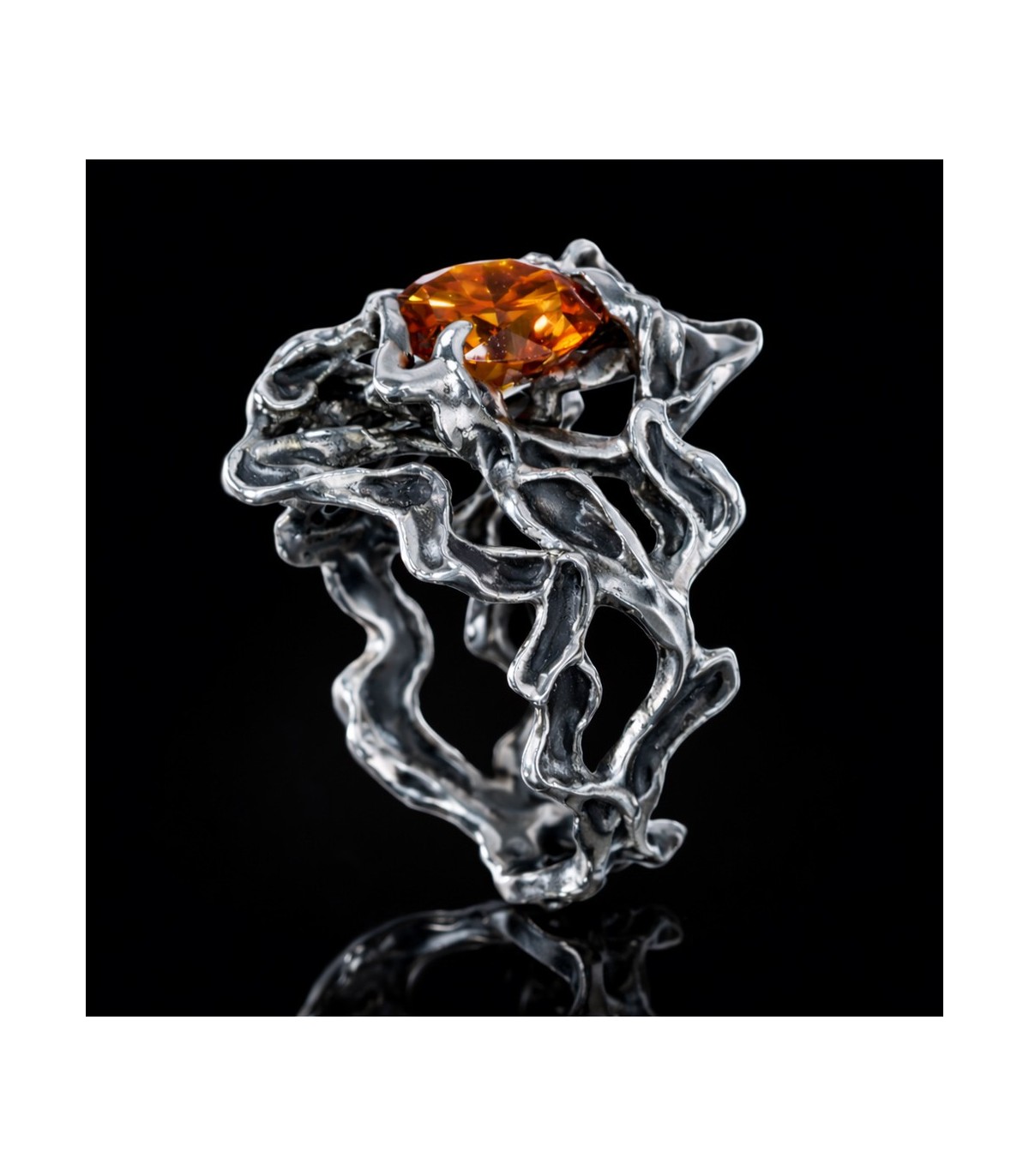 Phaedra Ring – Sculptural Sterling Silver Ring with 3 ct Moissanite