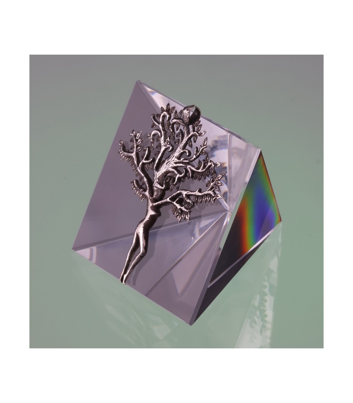The Tree of Life rises from the female body — the trunk shaped as a nude woman, calm and grounded, rooted in the essence of being. From her head, hair flows upward, transforming into branches and leaves, into the breath of the forest itself. The boundary between human and nature dissolves.